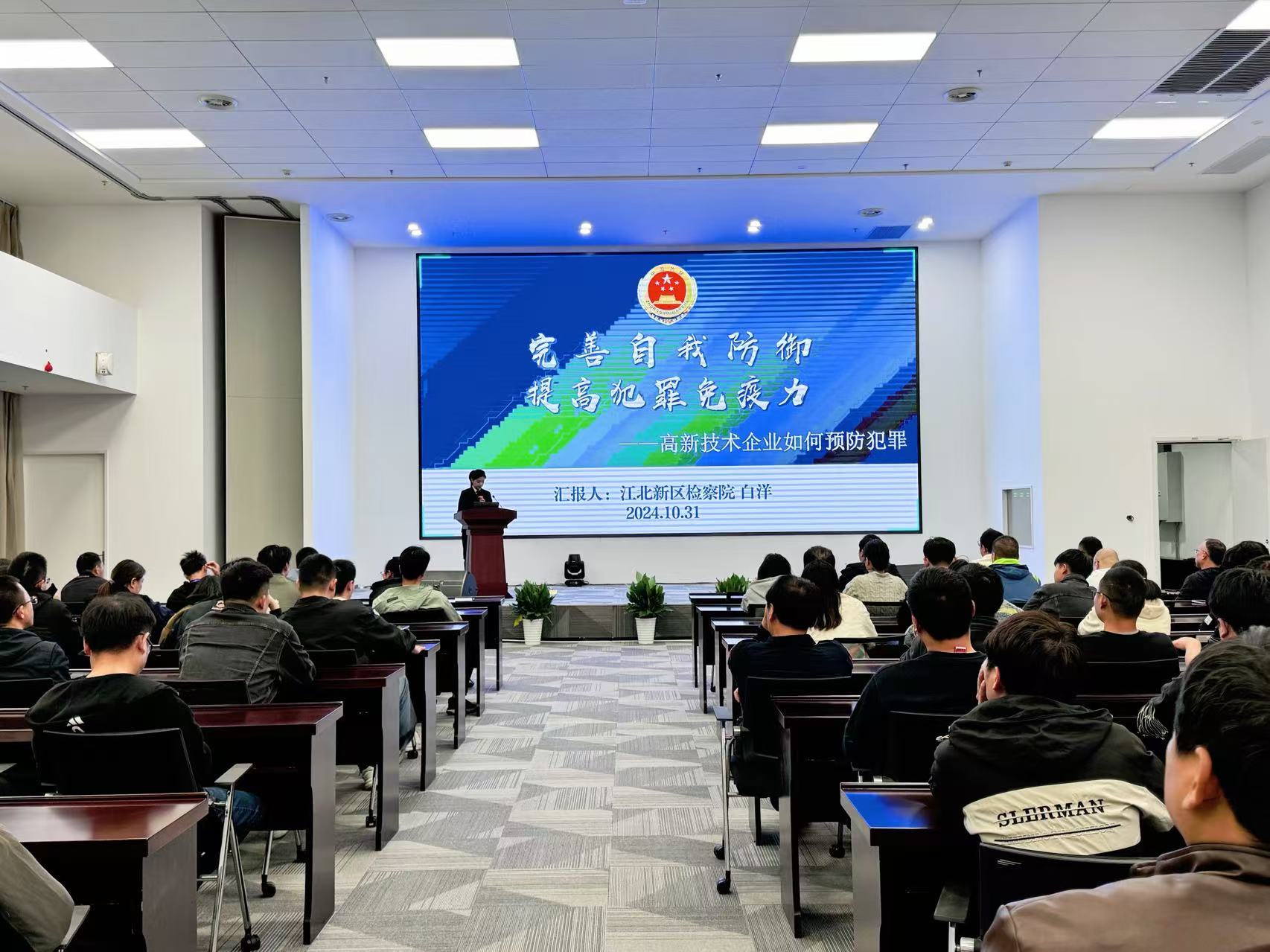 为扎实开展“检察护企”专项行动,保护高新技术企业的合法权益,促进高新技术企业的健康发展。2024年10月31日中午,南京江北新区人民检察院刑事检察部干警白洋赴研创园江苏集萃智能制造技术研究所有限公司,开展了知识产权法治宣讲活动,该企业100余名职工参加活动。
