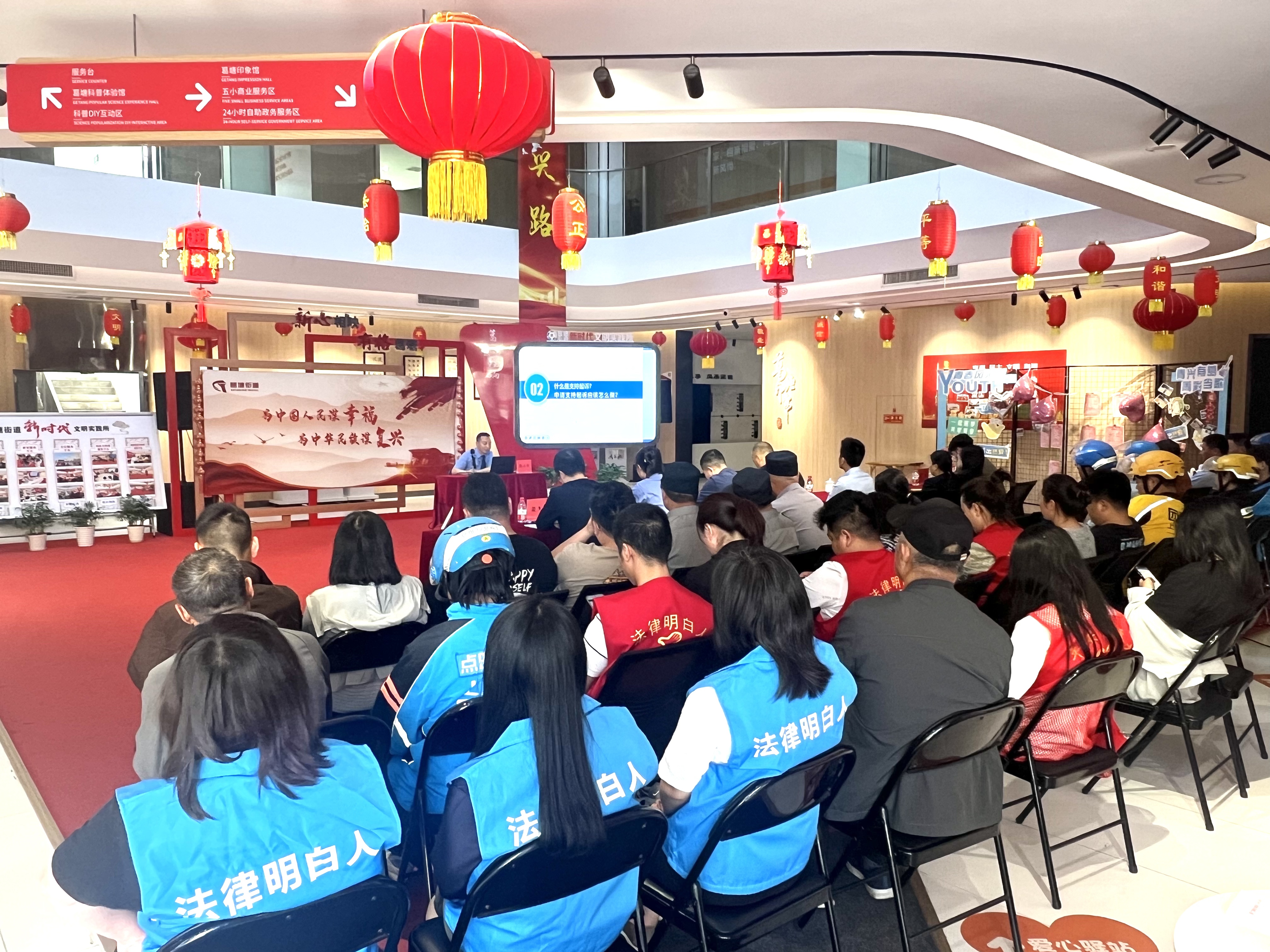 为切实提升新业态劳动者法律意识,在“五一”国际劳动节来临之际,结合全国第五个“民法典宣传月”,2025年4月29日下午,南京江北新区人民检察院协同新区总工会、综合治理局等单位,共同走进葛塘街道新时代文明实践所为辖区内外卖骑手、物业保安、工会工作人员等50余名群众开展“梧桐行·小波热线”法治宣传服务。
