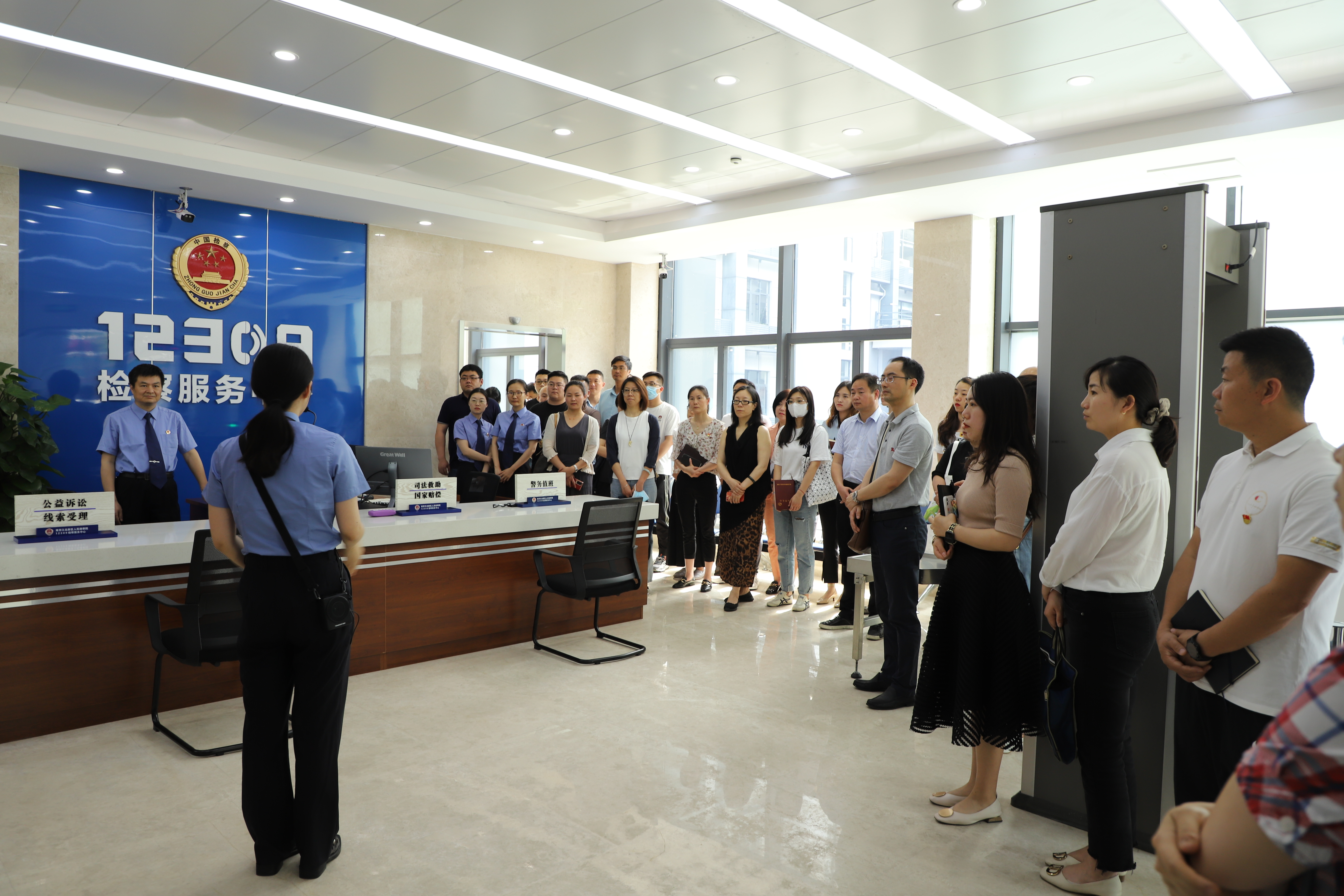 为认真落实全国政法队伍教育整顿和党史学习教育部署要求,推动“为群众办实事”走深走实,把好事办实、把实事办好,进一步提升检察工作知晓度和影响力,5月31日,江北新区检察院开展“向人民报告”检察开放日活动,邀请市人大代表、人民监督员、作风建设监督员、社区书记、网格员等37人走进检察机关现场参观、座谈交流,零距离了解检察工作。