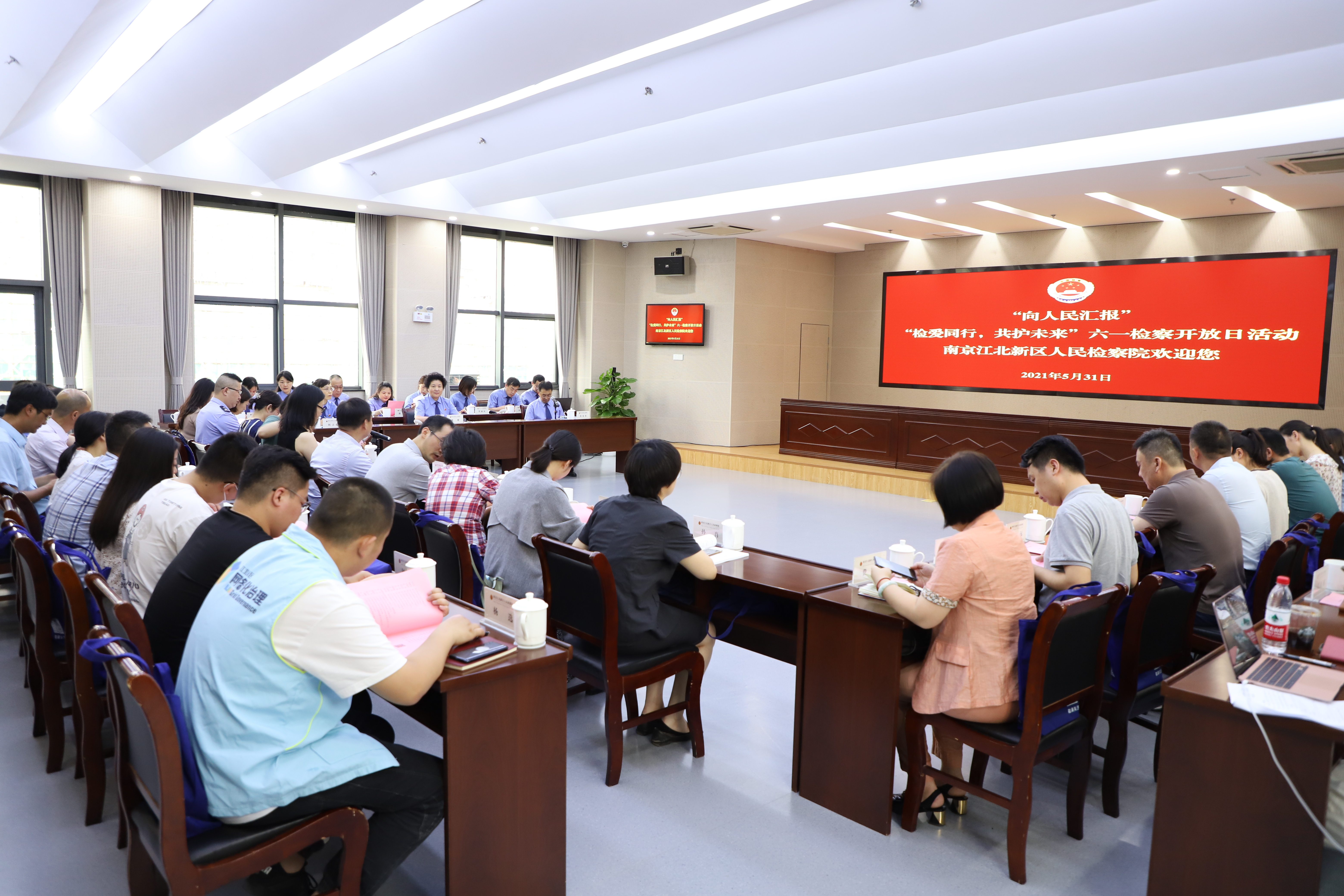 为认真落实全国政法队伍教育整顿和党史学习教育部署要求,推动“为群众办实事”走深走实,把好事办实、把实事办好,进一步提升检察工作知晓度和影响力,5月31日,江北新区检察院开展“向人民报告”检察开放日活动,邀请市人大代表、人民监督员、作风建设监督员、社区书记、网格员等37人走进检察机关现场参观、座谈交流,零距离了解检察工作。