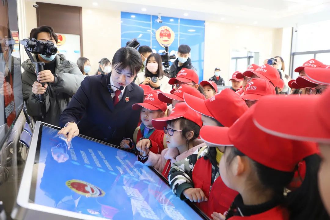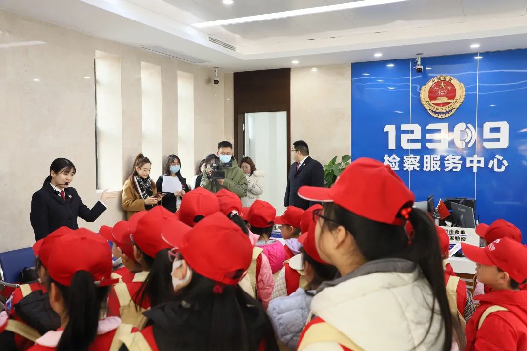 当天,江北新区检察院为小记者们准备了丰富多彩的日程安排。在检察官的带领下,小记者们先后参观了12309检察服务大厅、案件管理中心、未成年人检察工作室以及检察办案中心等,认真聆听了解检察院发展历程、各部门职能及未成年人检察工作等情况。