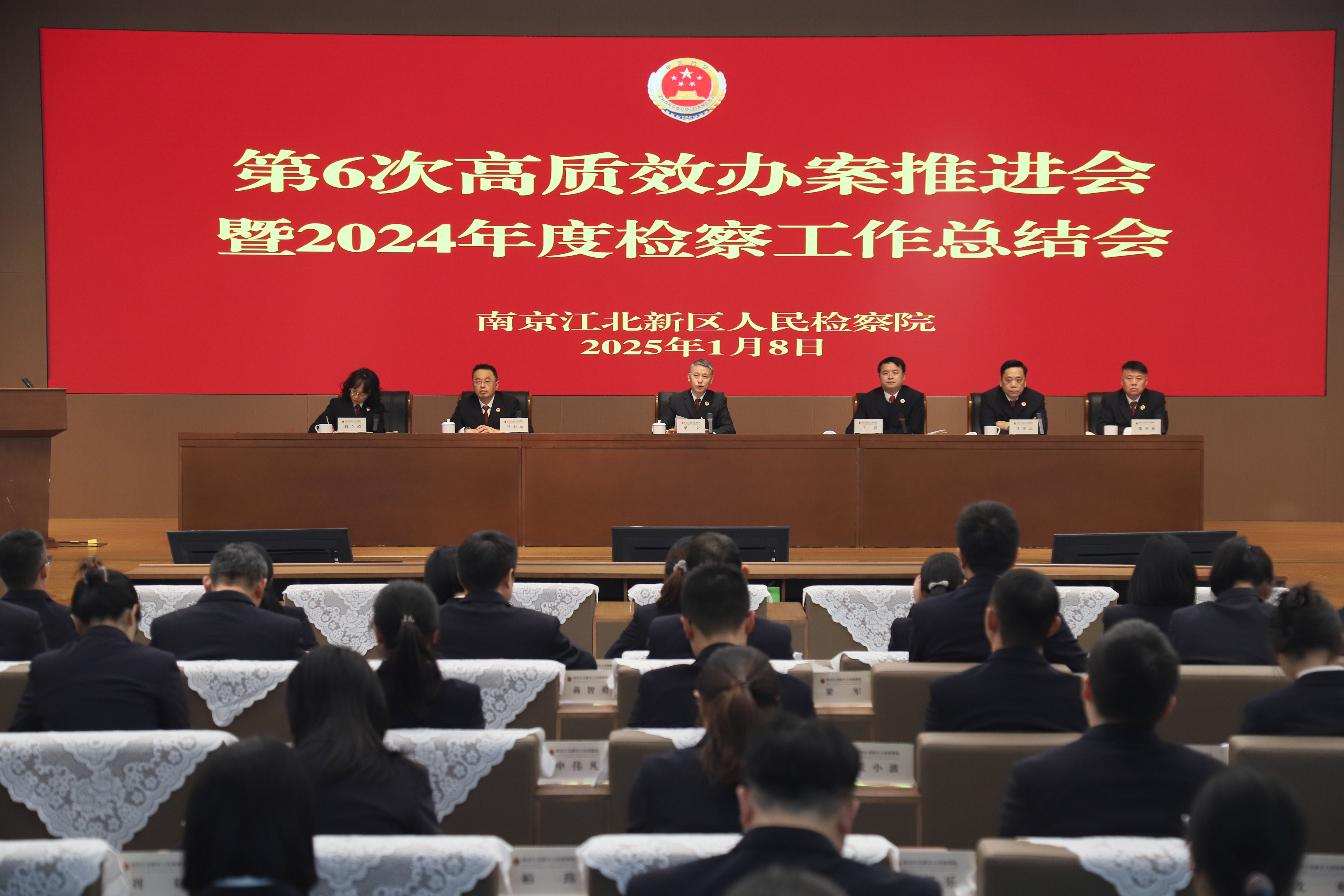2025年1月8日下午,南京江北新区人民检察院召开第六次高质效办案推进会暨2024年度检察工作总结会,全面回顾总结2024年检察工作,研究谋划2025年进一步推动检察工作高质量发展的思路举措。
