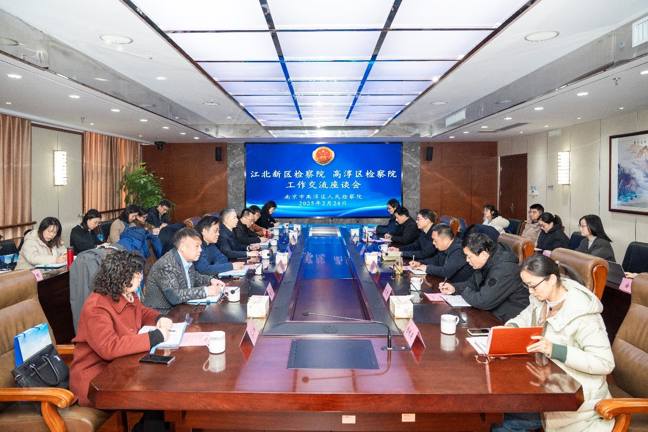 2月24日,江北新区检察院分党组书记、检察长梁云带领江北新区院中层以上领导干部一行14人,就人才培养、案例培育等方面到高淳区院调研交流。