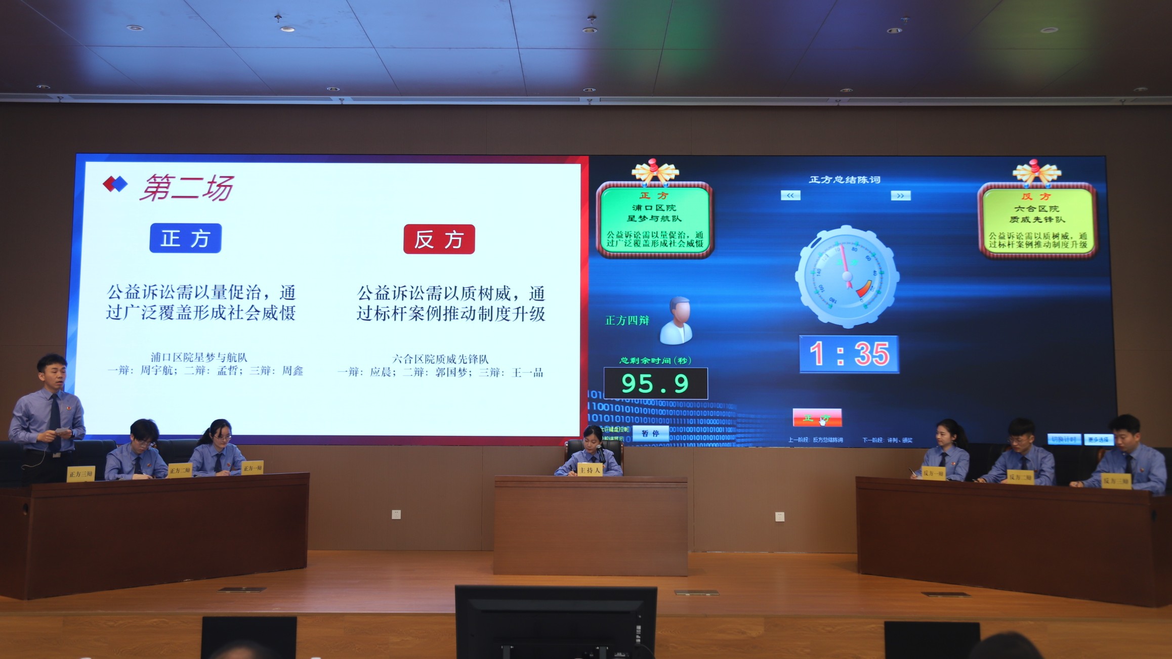 “三个辩题打破了传统刑事案件辩论的框架,让民事、行政、公益诉讼以及综合岗位的青年干警都能参与其中,提高思辨能力。”