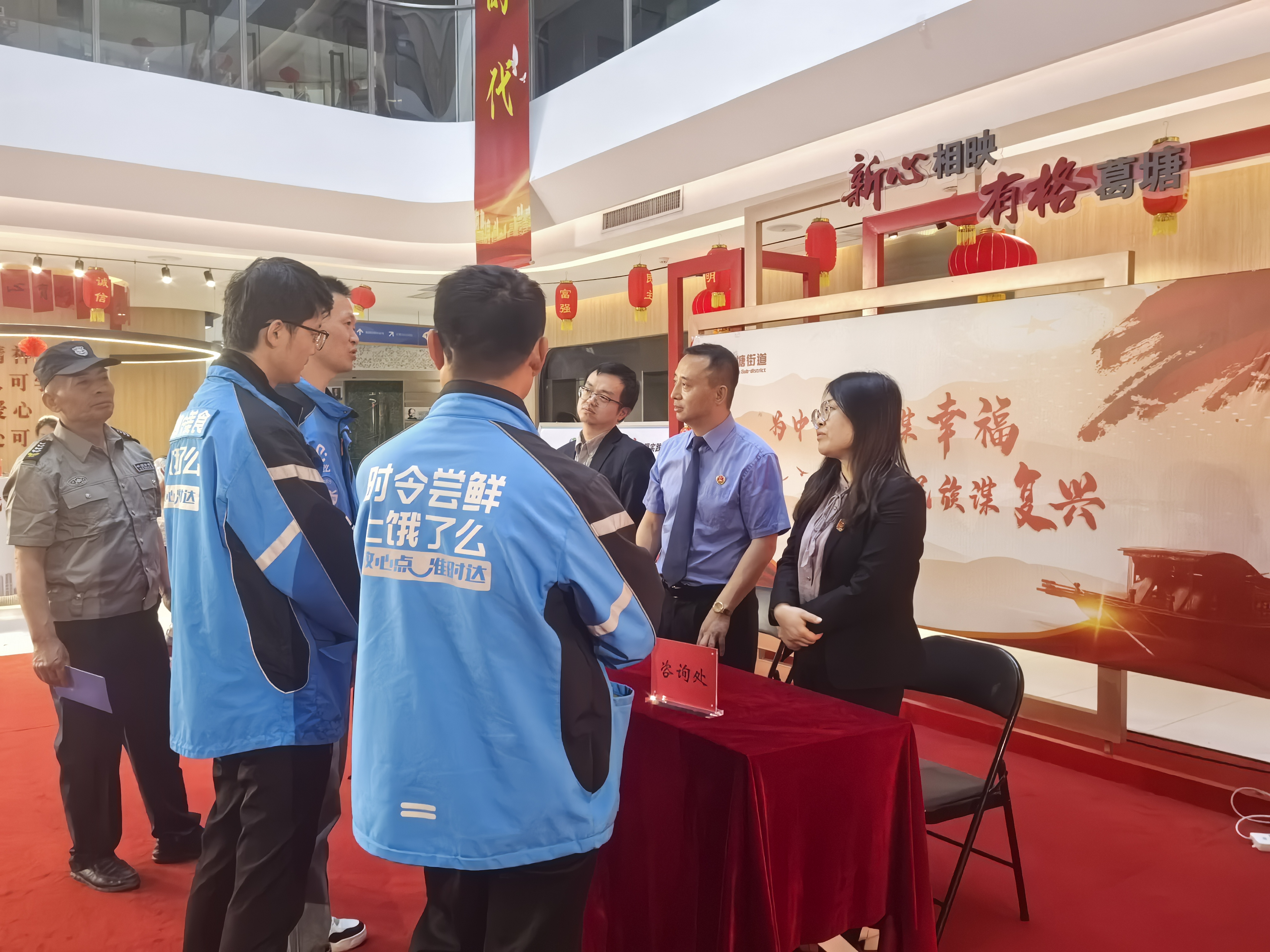 为切实提升新业态劳动者法律意识,在“五一”国际劳动节来临之际,结合全国第五个“民法典宣传月”,2025年4月29日下午,南京江北新区人民检察院协同新区总工会、综合治理局等单位,共同走进葛塘街道新时代文明实践所为辖区内外卖骑手、物业保安、工会工作人员等50余名群众开展“梧桐行·小波热线”法治宣传服务。