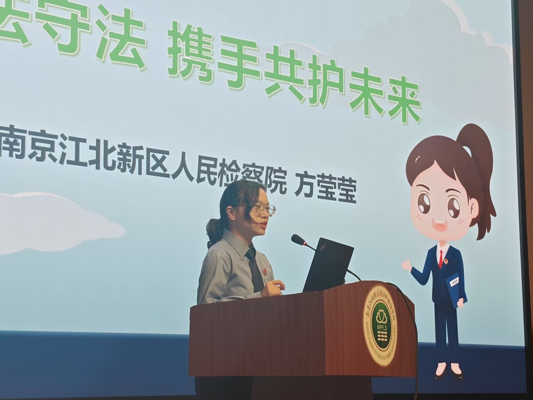 2025年4月25日下午,江北新区检察院未成年人检察部干警方莹莹走进浦外校园,为八年级师生带来一堂以“学法懂法守法,携手共护未来”为主题的法治教育课。