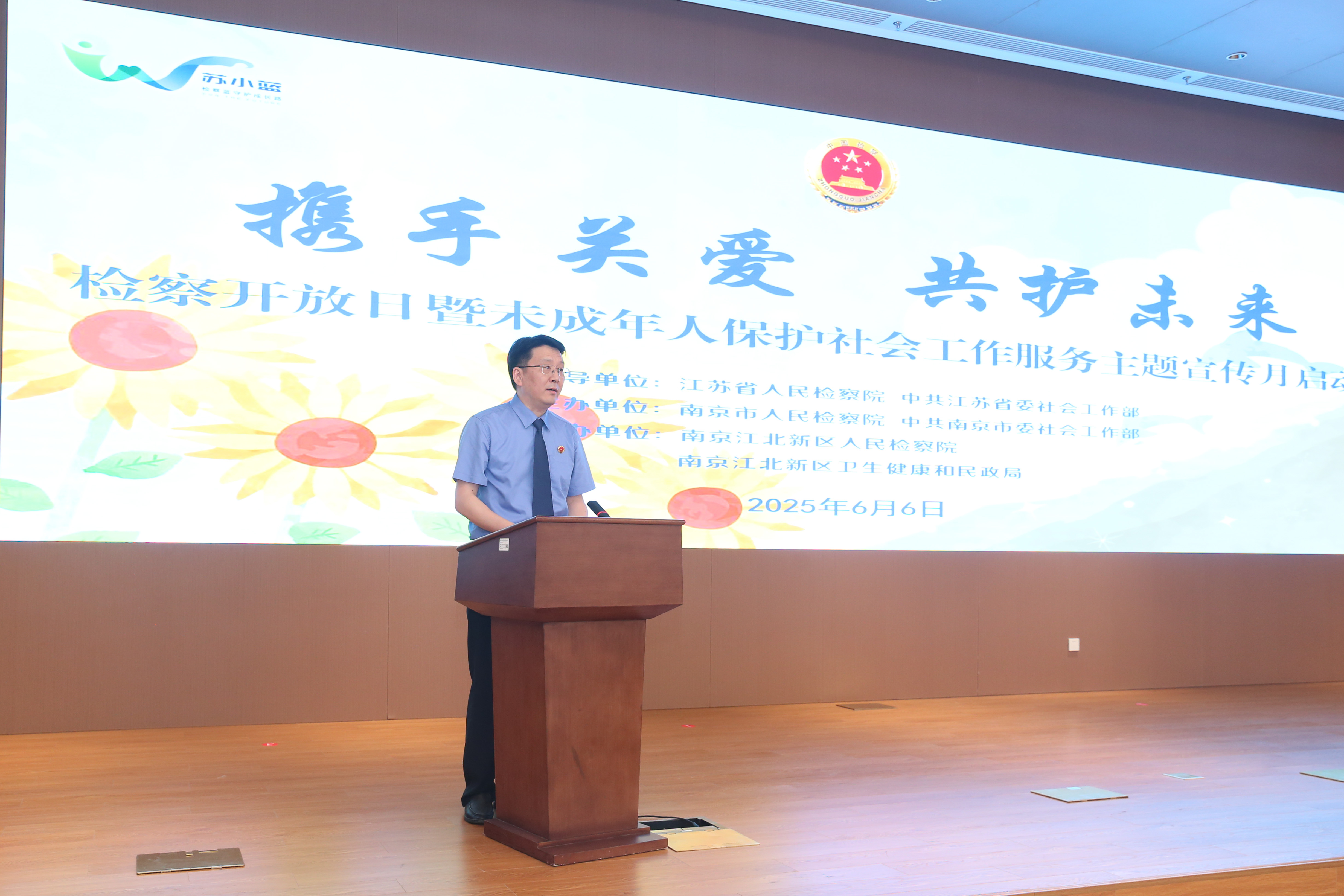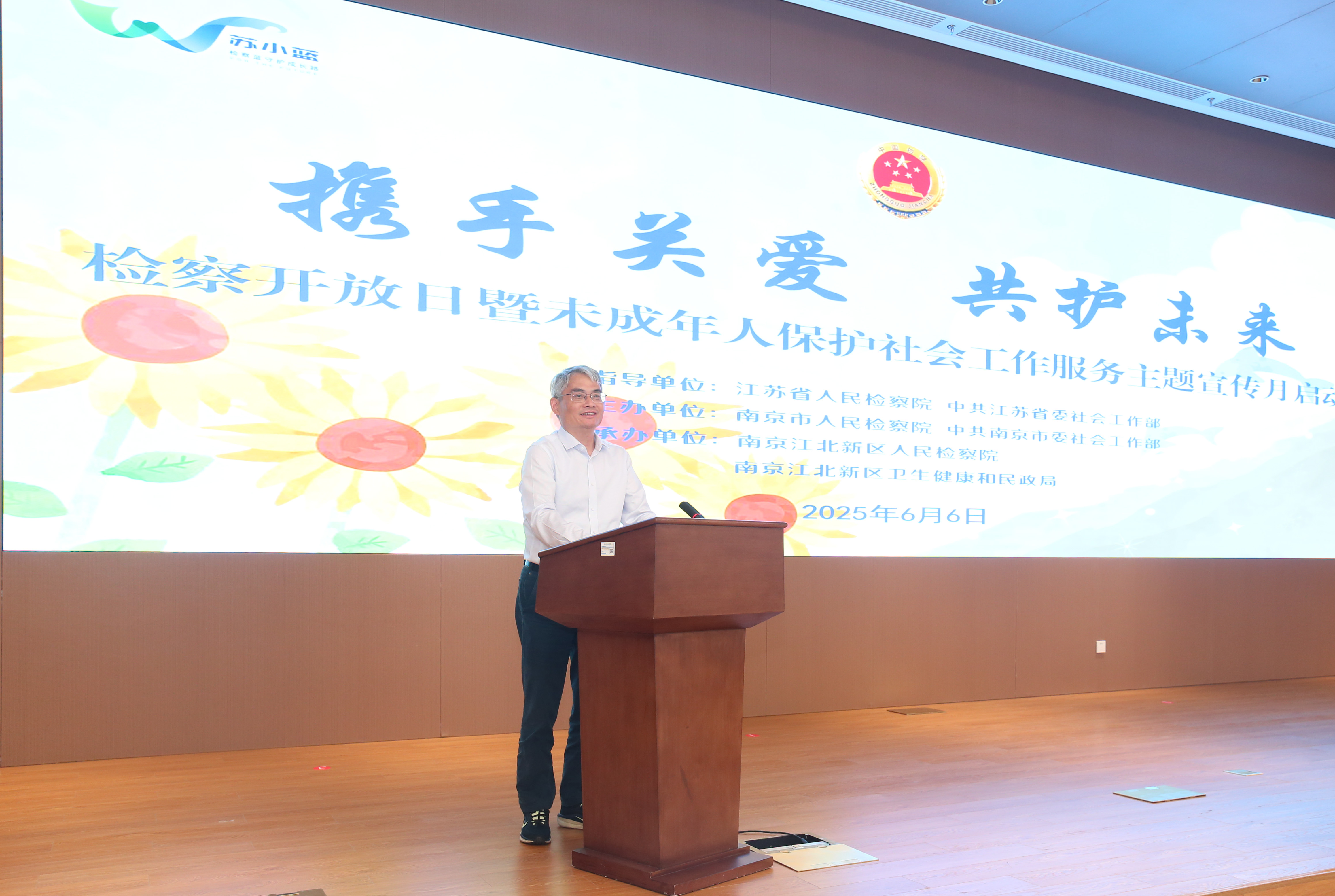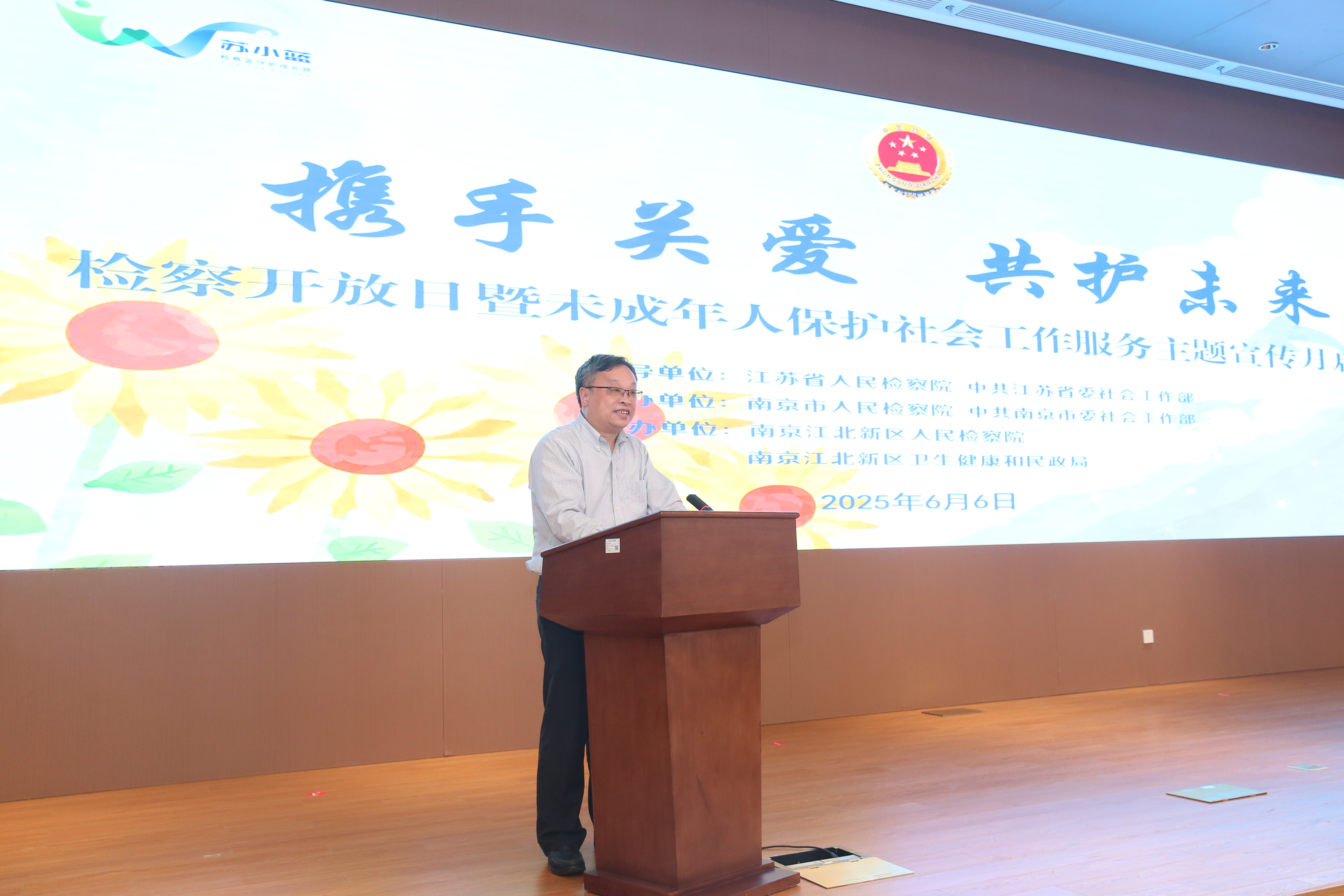 六月初夏万物新,护苗成长正当时。6月6日,江苏省、南京市、南京江北新区三级检察院联合江苏省委、南京市委社会工作部,南京江北新区卫生健康和民政局联合举办“携手关爱 共护未来”检察开放日暨未成年人保护社会工作服务主题宣传月活动,邀请人大代表,政协委员,未成年人保护领域社会工作专业领军型人才代表,民政、教育、共青团、妇联等相关部门代表共计40余人参加。