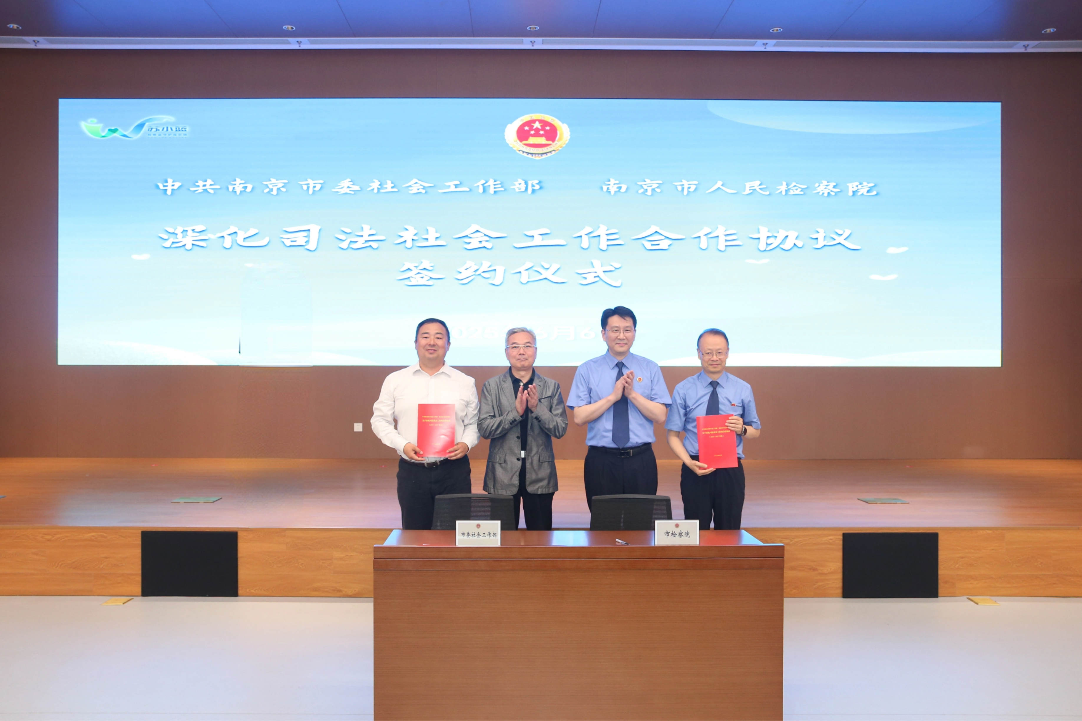 南京市检察院与南京市委社会工作部共同签署《关于深化司法社会工作的合作协议》。