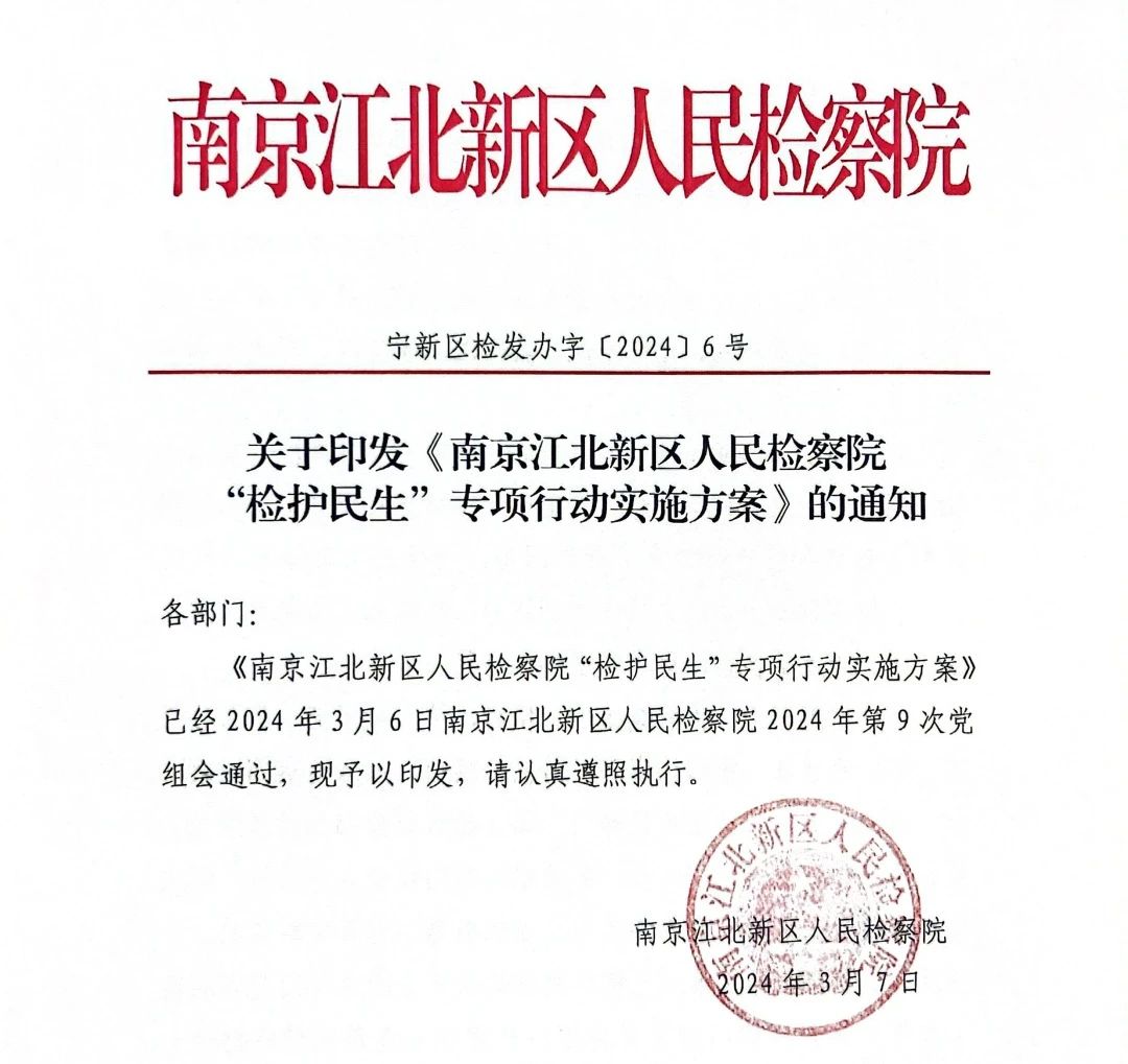 江北新区检察院出台“检护民生”专项行动实施方案