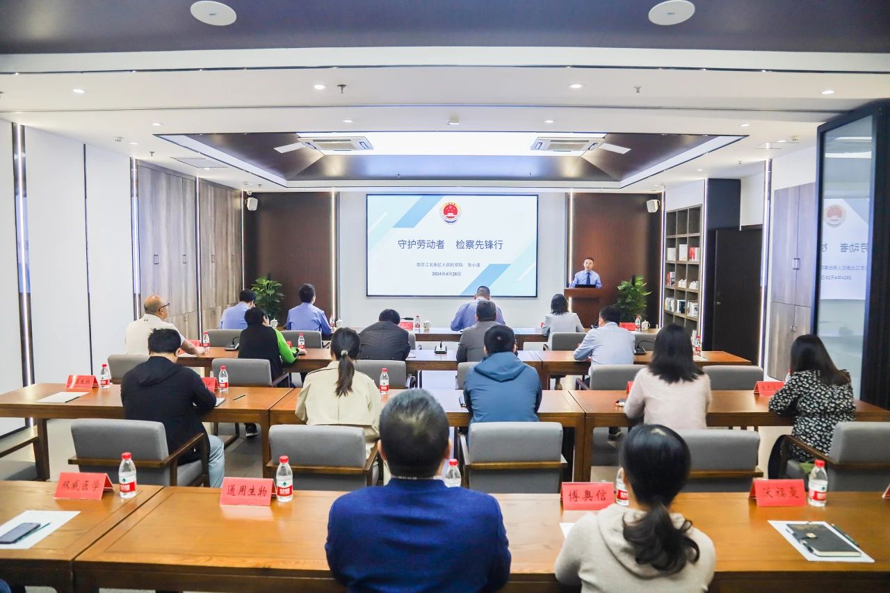 4月28日,江北新区检察院青年干警志愿服务队在江北新区生物医药谷开展“守护劳动者 检察先锋行”保护劳动者合法权益志愿服务活动。