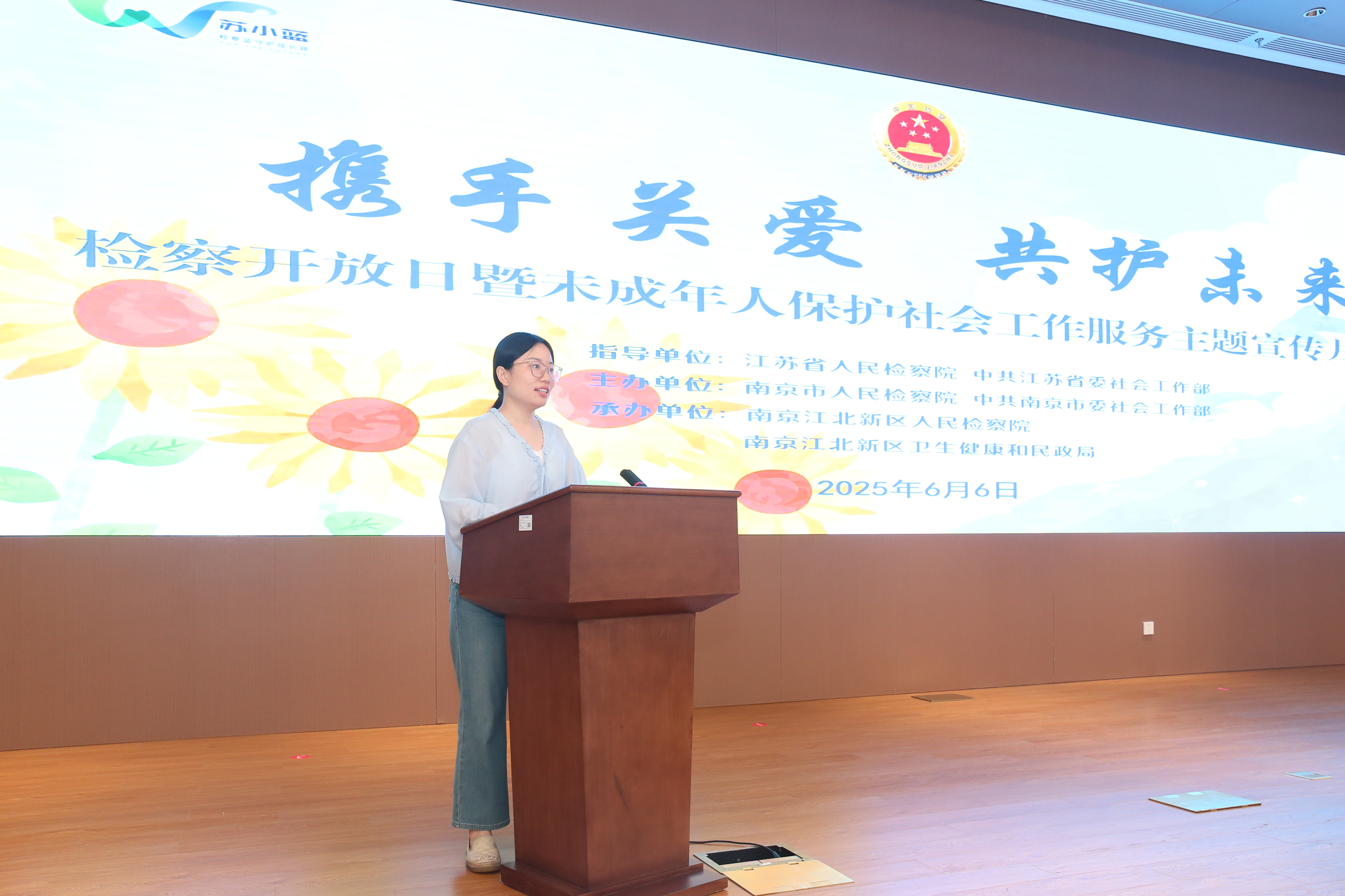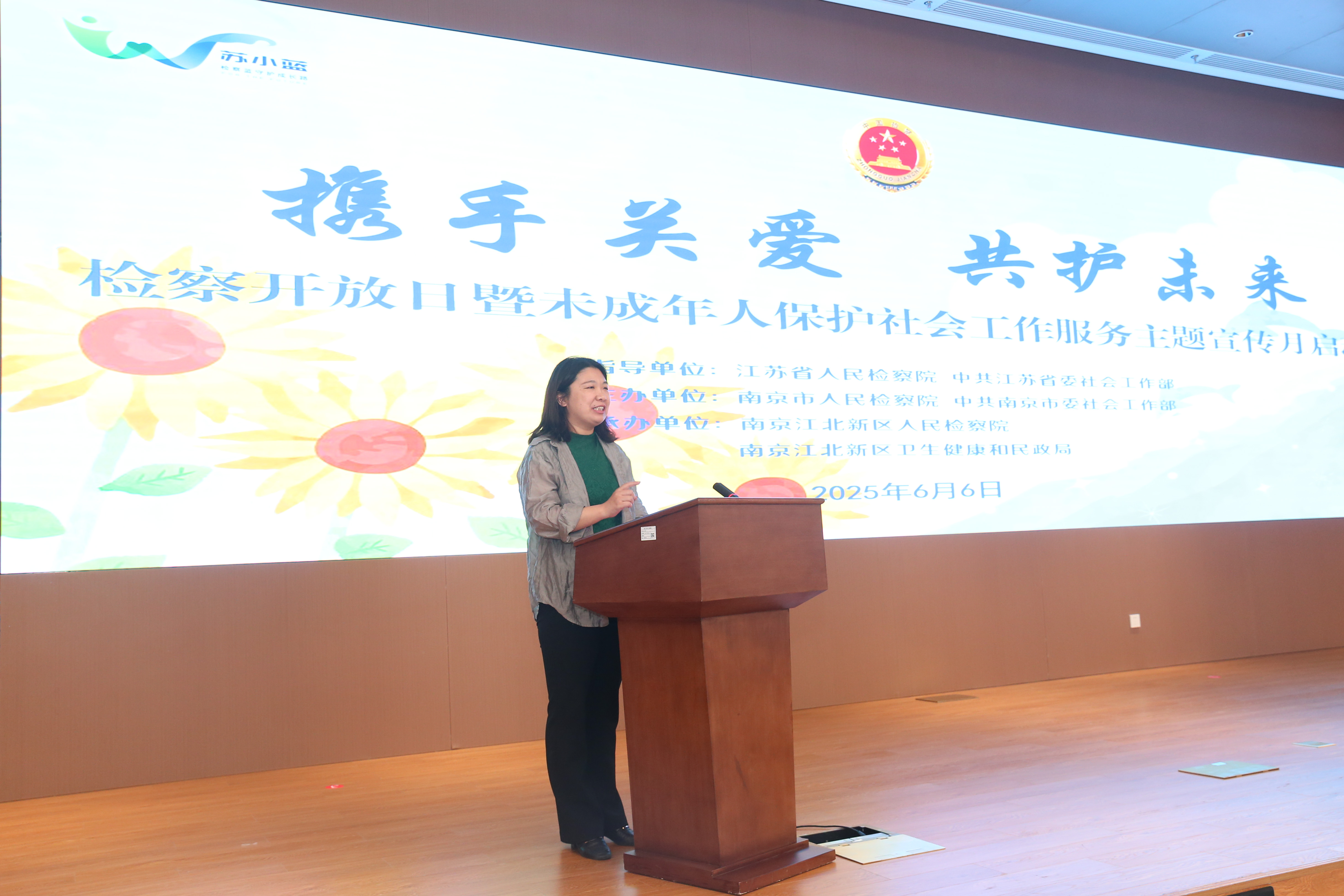 六月初夏万物新,护苗成长正当时。6月6日,江苏省、南京市、南京江北新区三级检察院联合江苏省委、南京市委社会工作部,南京江北新区卫生健康和民政局联合举办“携手关爱 共护未来”检察开放日暨未成年人保护社会工作服务主题宣传月活动,邀请人大代表,政协委员,未成年人保护领域社会工作专业领军型人才代表,民政、教育、共青团、妇联等相关部门代表共计40余人参加。