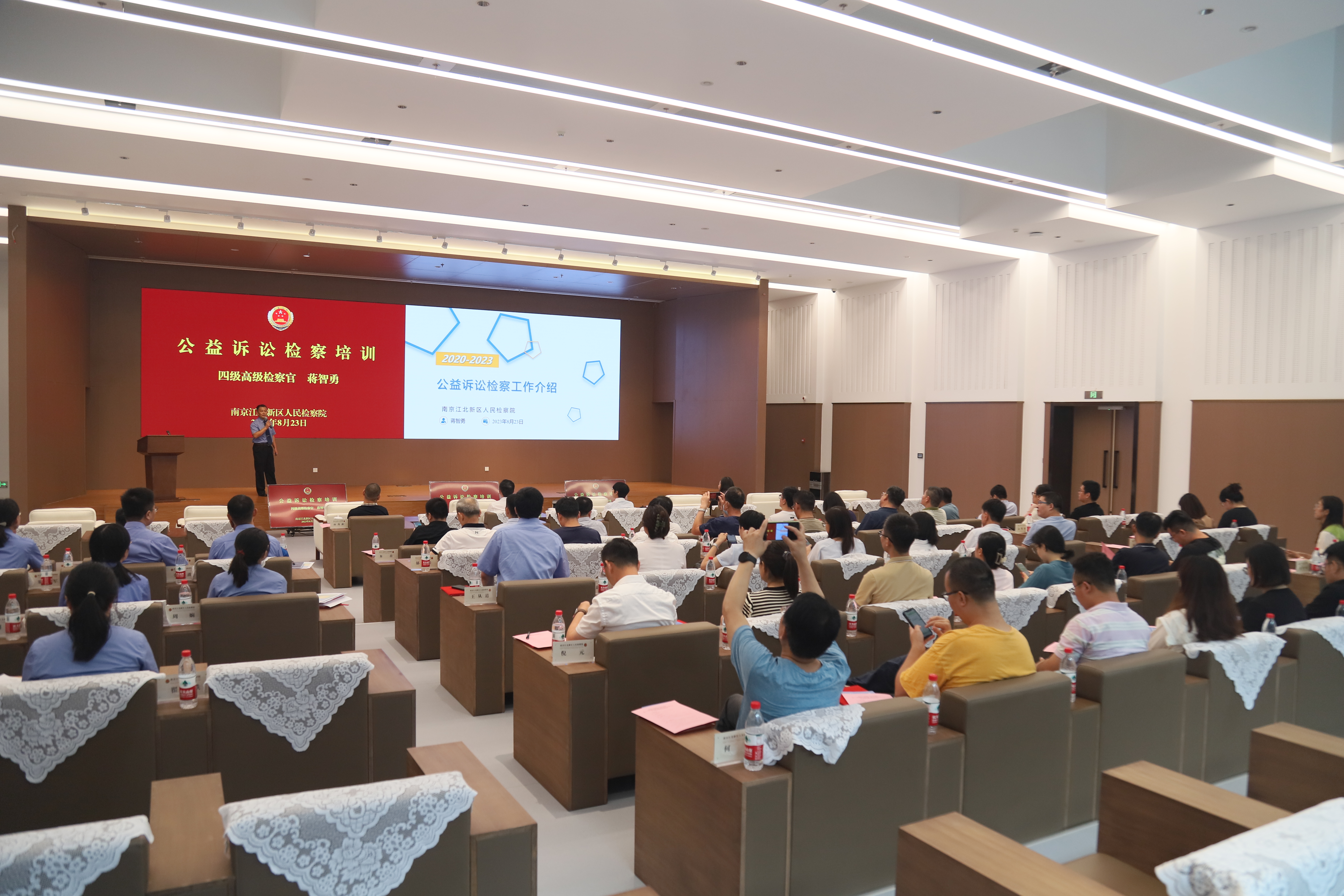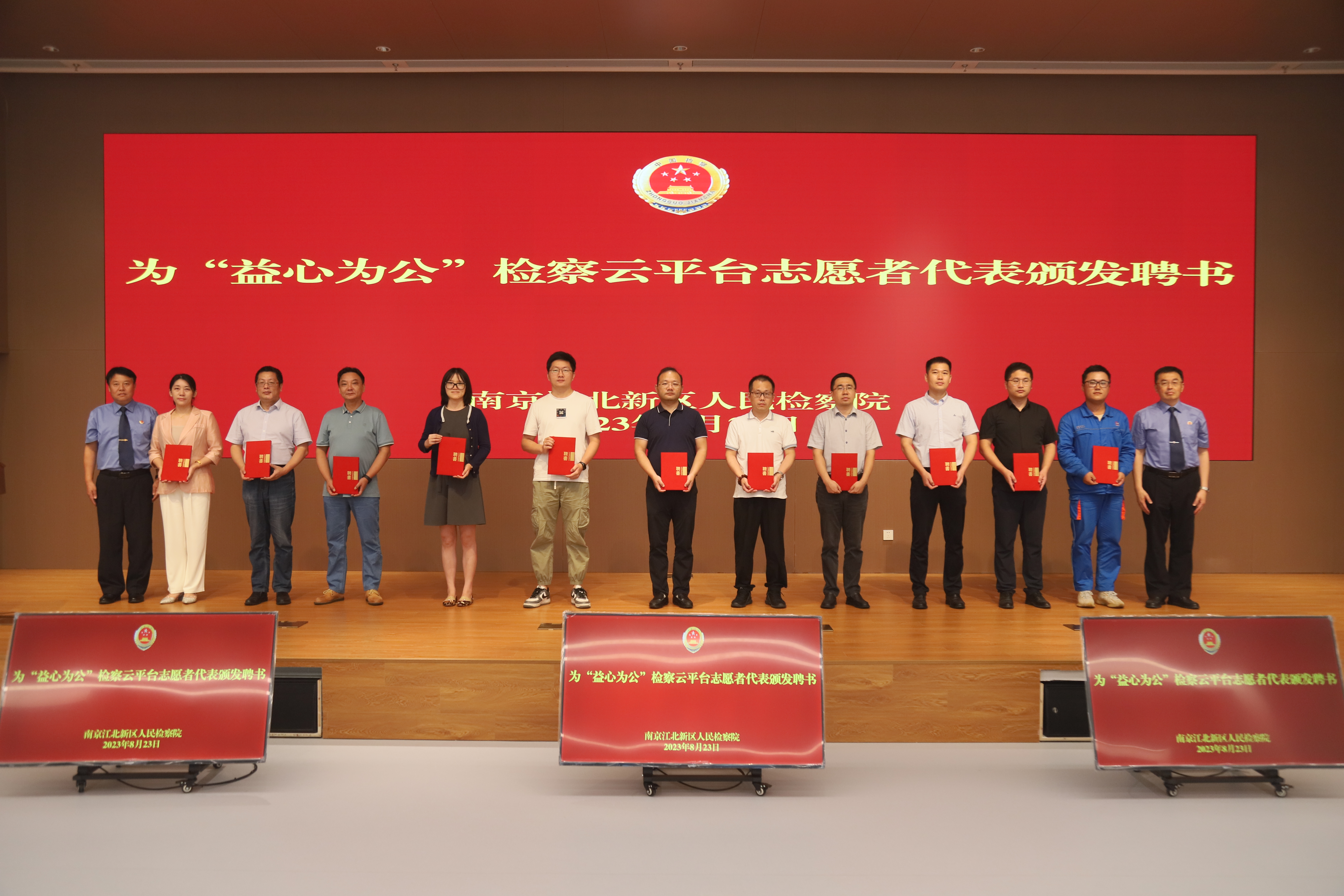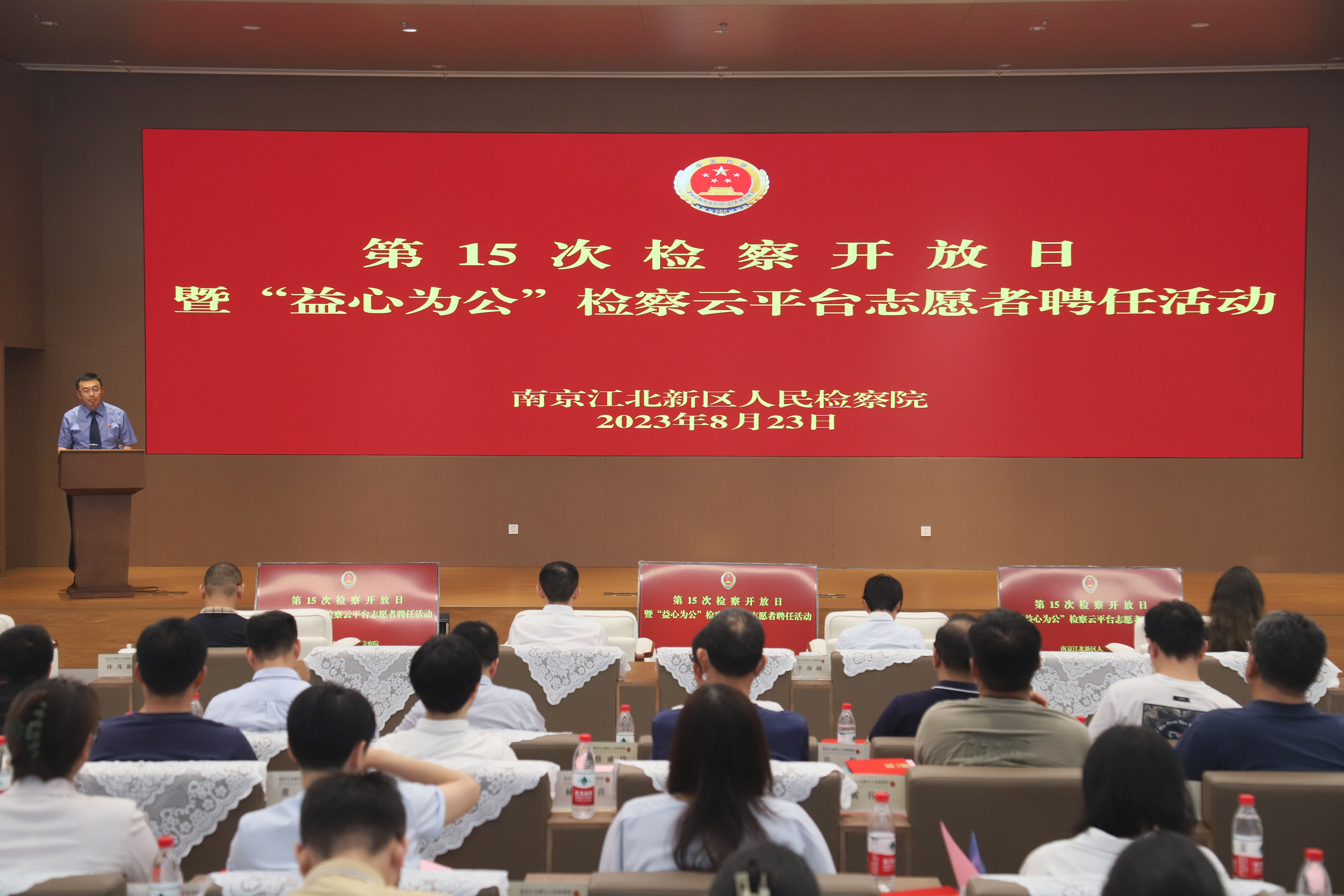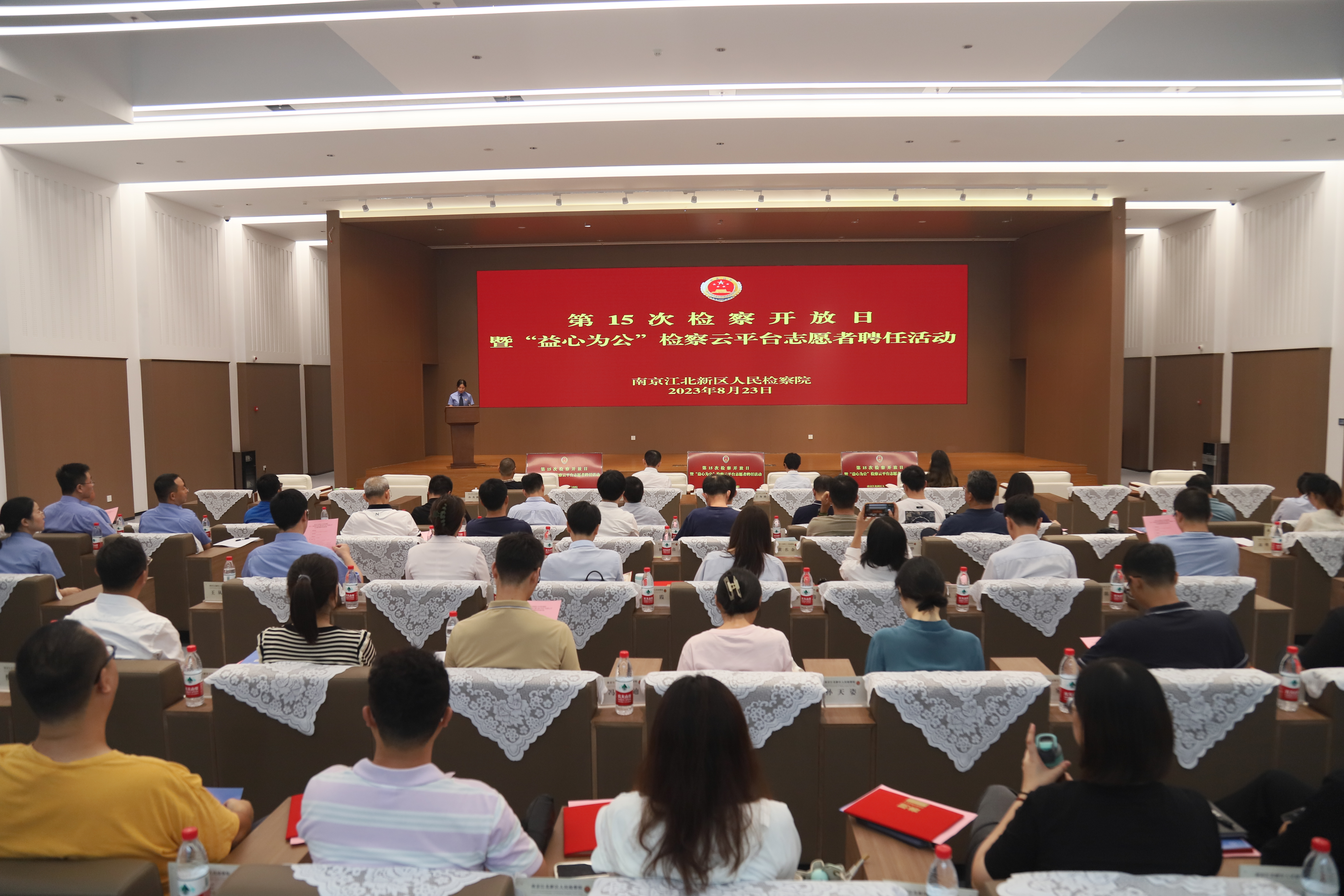 8月23日下午,南京江北新区人民检察院举办第15次检察开放日暨“益心为公”检察云平台志愿者聘任活动,人大代表、政协委员、人民监督员和“益心为公”志愿者等50余人走进检察机关,一场为“益心为公”志愿者进行的公益诉讼检察线索培训生动展开,也为共谋公益诉讼检察高质量发展、凝聚公益保护合力加油。