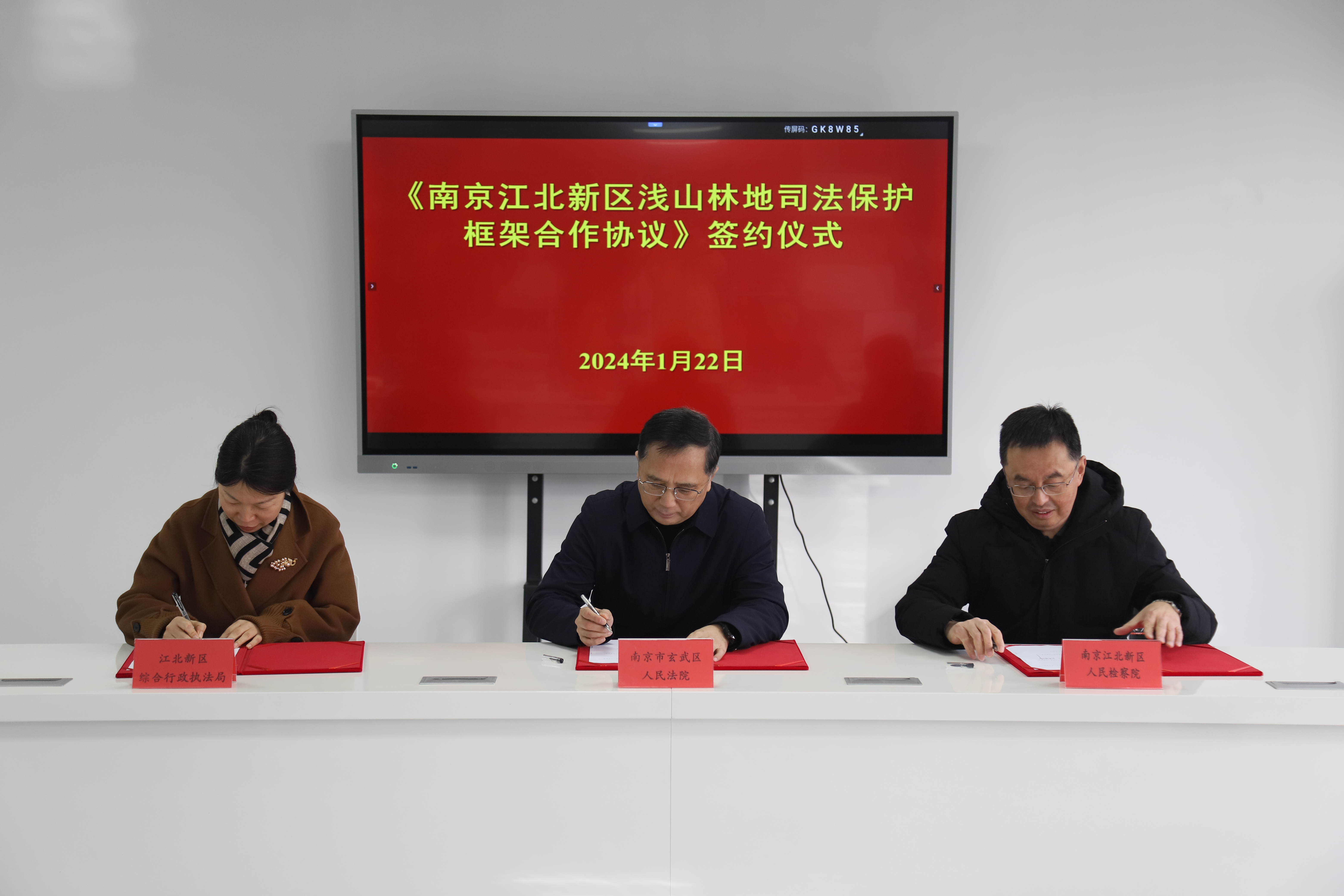 1月22日下午,南京市玄武区人民法院、南京江北新区人民检察院、江北新区综合行政执法局共同会签《南京江北新区浅山林地司法保护框架合作协议》,合力推动生态环境损害修复治理。