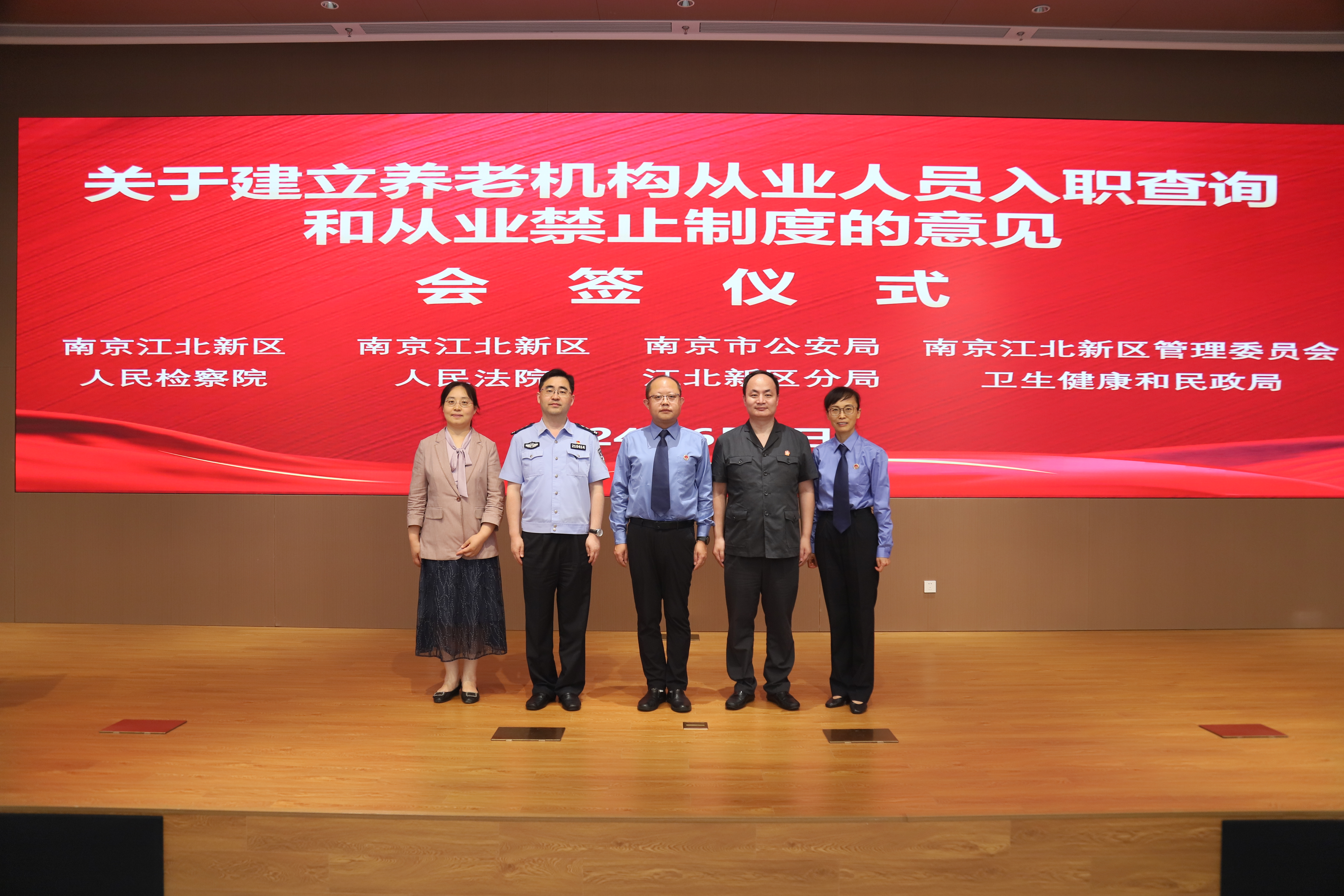 江北新区检察院牵头法院、公安分局、卫生健康和民政局,联合会签《关于建立养老机构从业人员入职查询和从业禁止制度的意见(试行)》,进一步完善养老机构安全监管体系,加强对侵害老年人合法权益违法犯罪的源头预防,在全市率先建立养老机构从业人员入职查询和从业禁止制度。