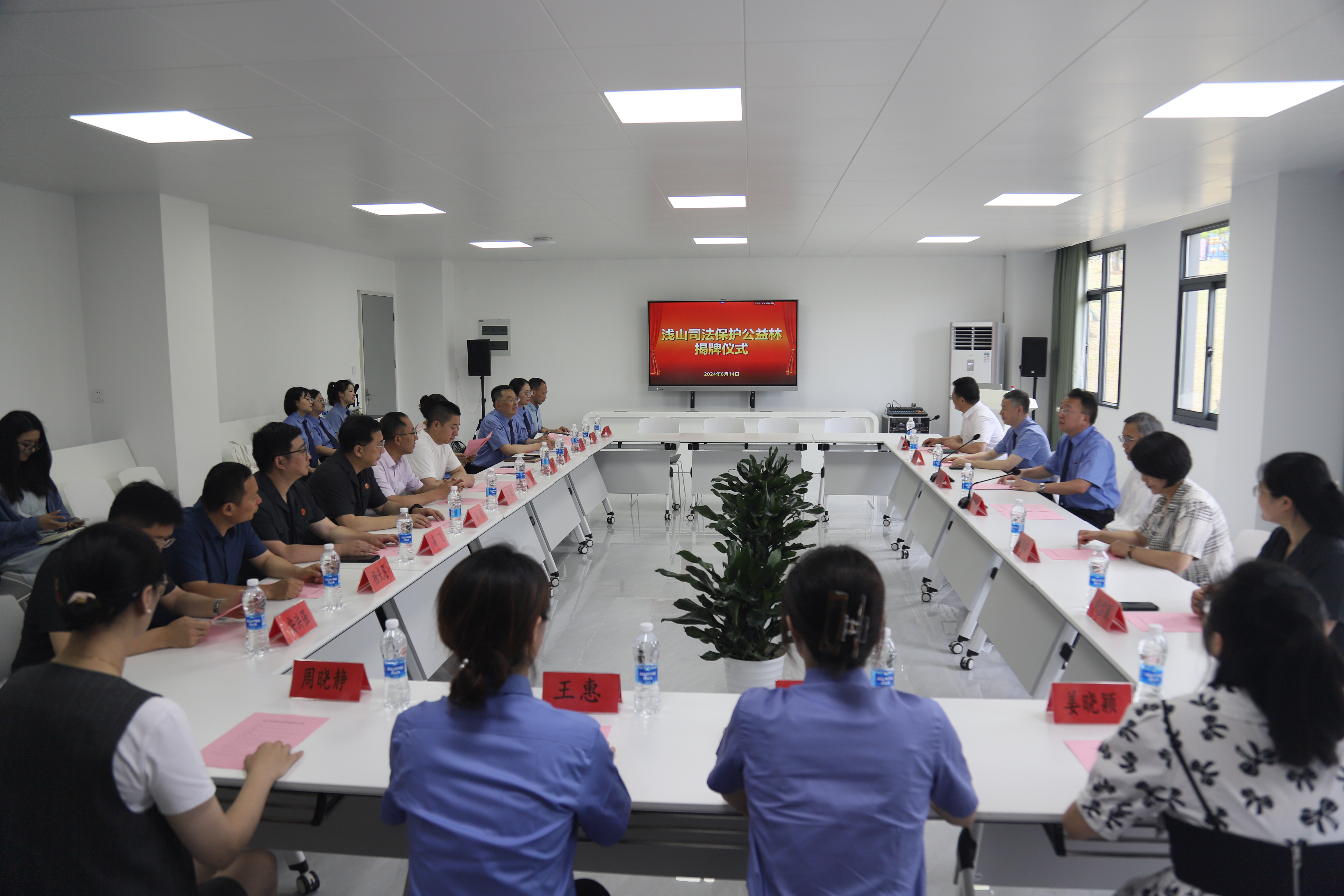 为深入学习贯彻习近平生态文明思想、习近平法治思想,进一步推进“检护民生”专项行动,凝聚司法机关、行政机关协同保护生态资源的工作合力,6月14日上午,南京市人民检察院、南京市中级人民法院、南京市玄武区人民法院、南京江北新区人民检察院、南京江北新区综合行政执法局为共同打造的浅山司法保护公益林举行揭幕仪式。