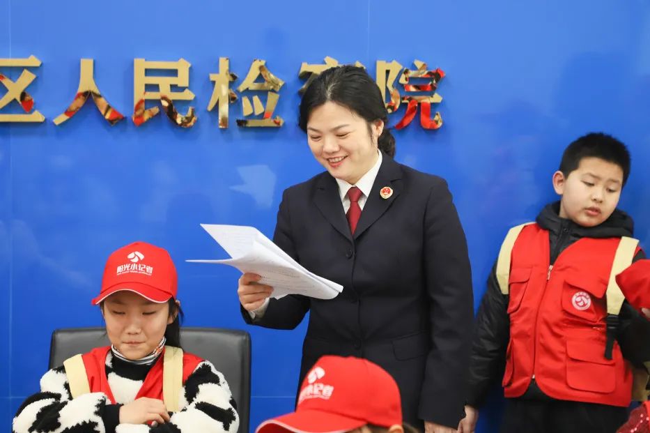 当天,江北新区检察院为小记者们准备了丰富多彩的日程安排。在检察官的带领下,小记者们先后参观了12309检察服务大厅、案件管理中心、未成年人检察工作室以及检察办案中心等,认真聆听了解检察院发展历程、各部门职能及未成年人检察工作等情况。