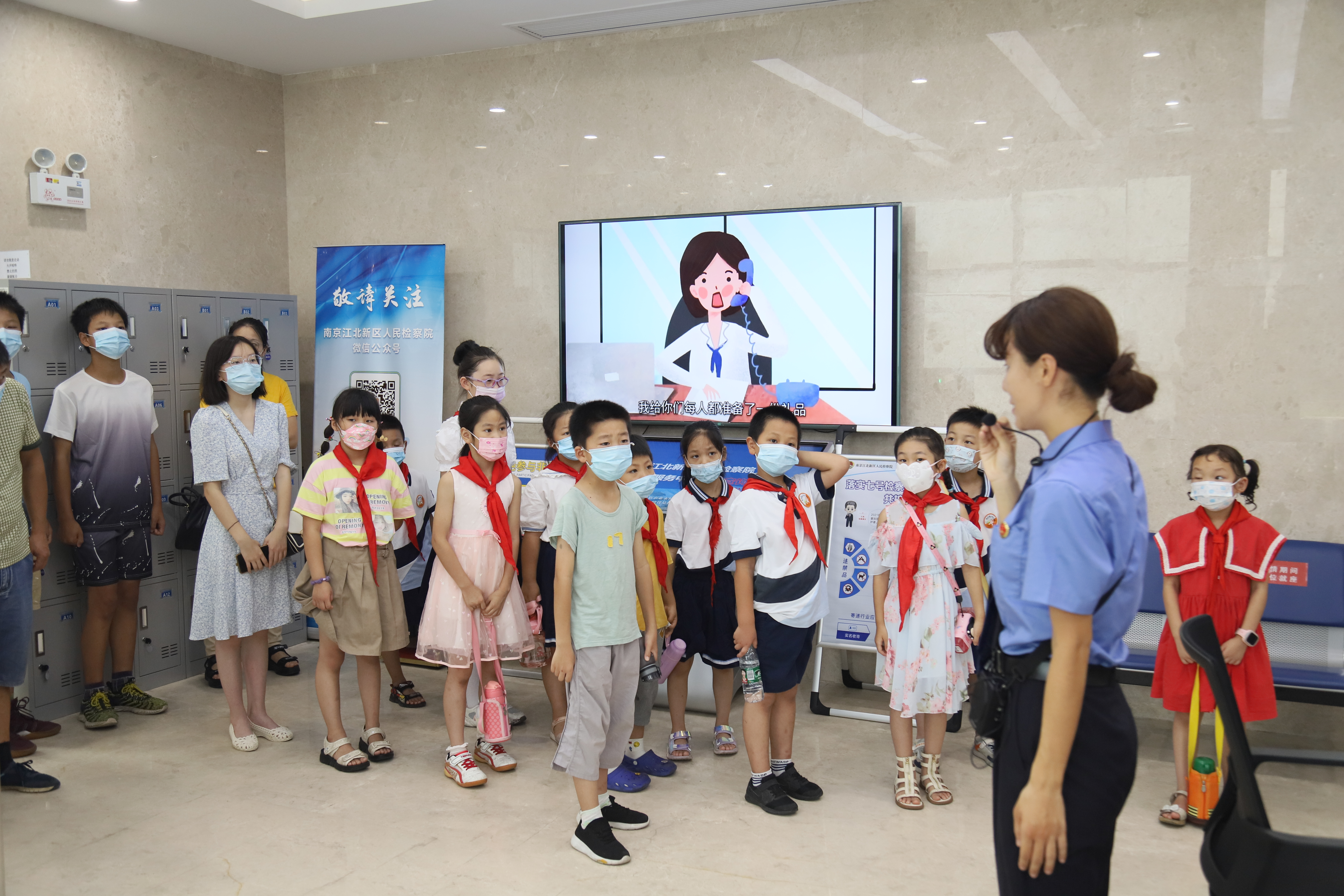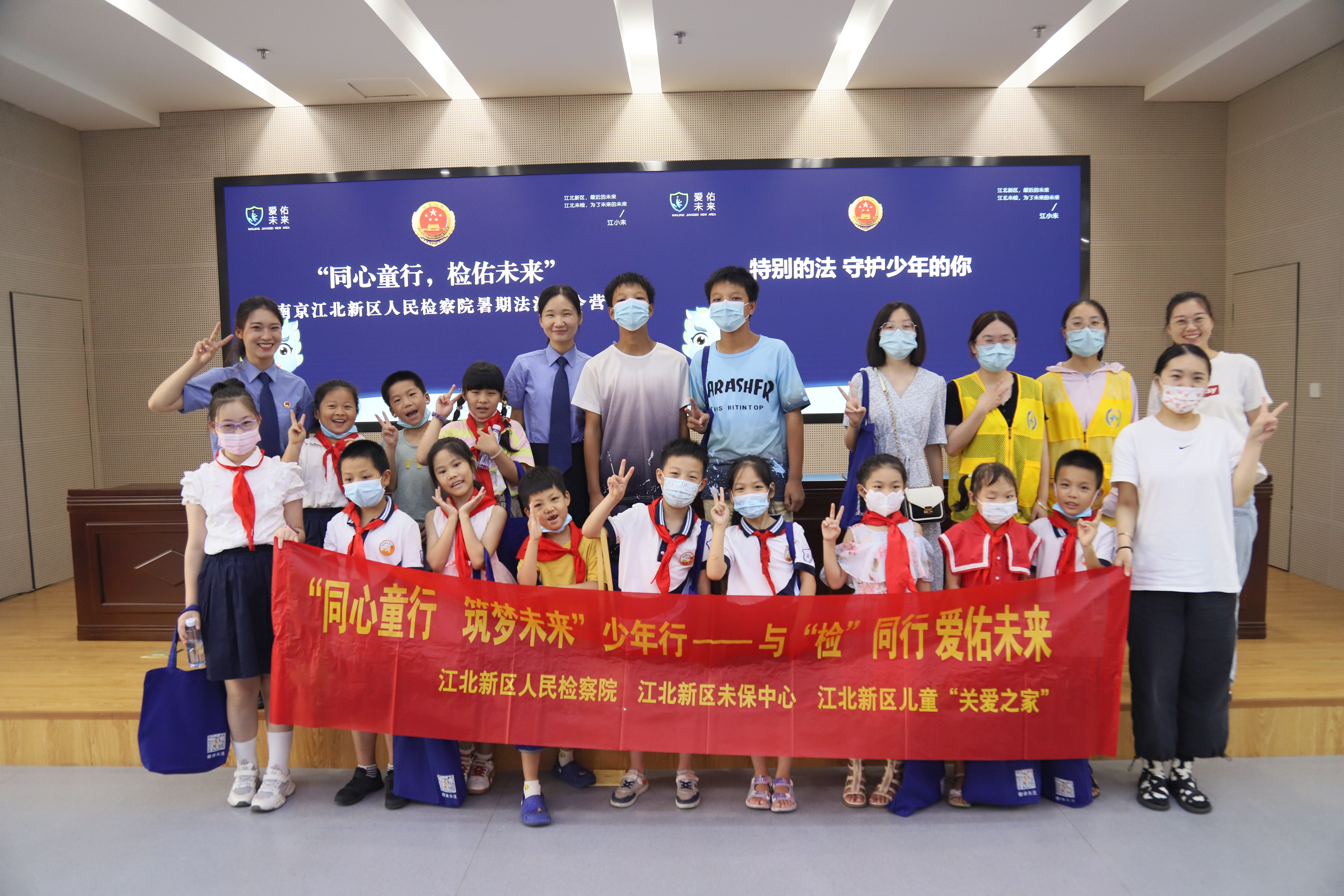 2022年8月17日上午,南京江北新区未成年人保护中心组织14名社区儿童走进南京江北新区人民检察院,开启奇妙的“法治夏令营”之旅。
