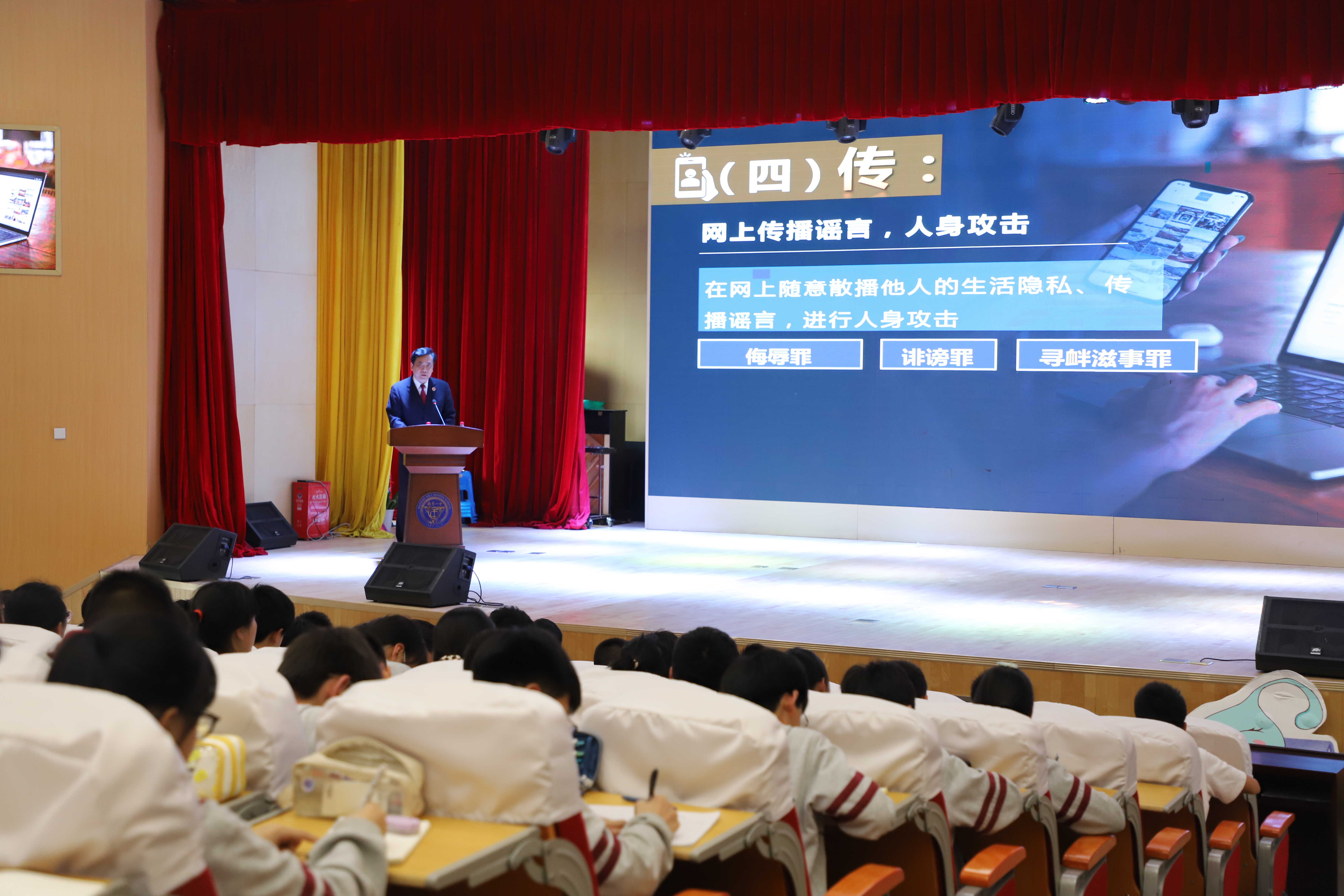 为提升未成年人保护成效,增强未成年人法律意识,教育未成年人正确认识校园欺凌的危害,2023年4月14日,院分党组成员、副检察长沈明志赴南京一中江北分校开展 “学法懂法守法,远离学生欺凌” 法治副校长专题授课。