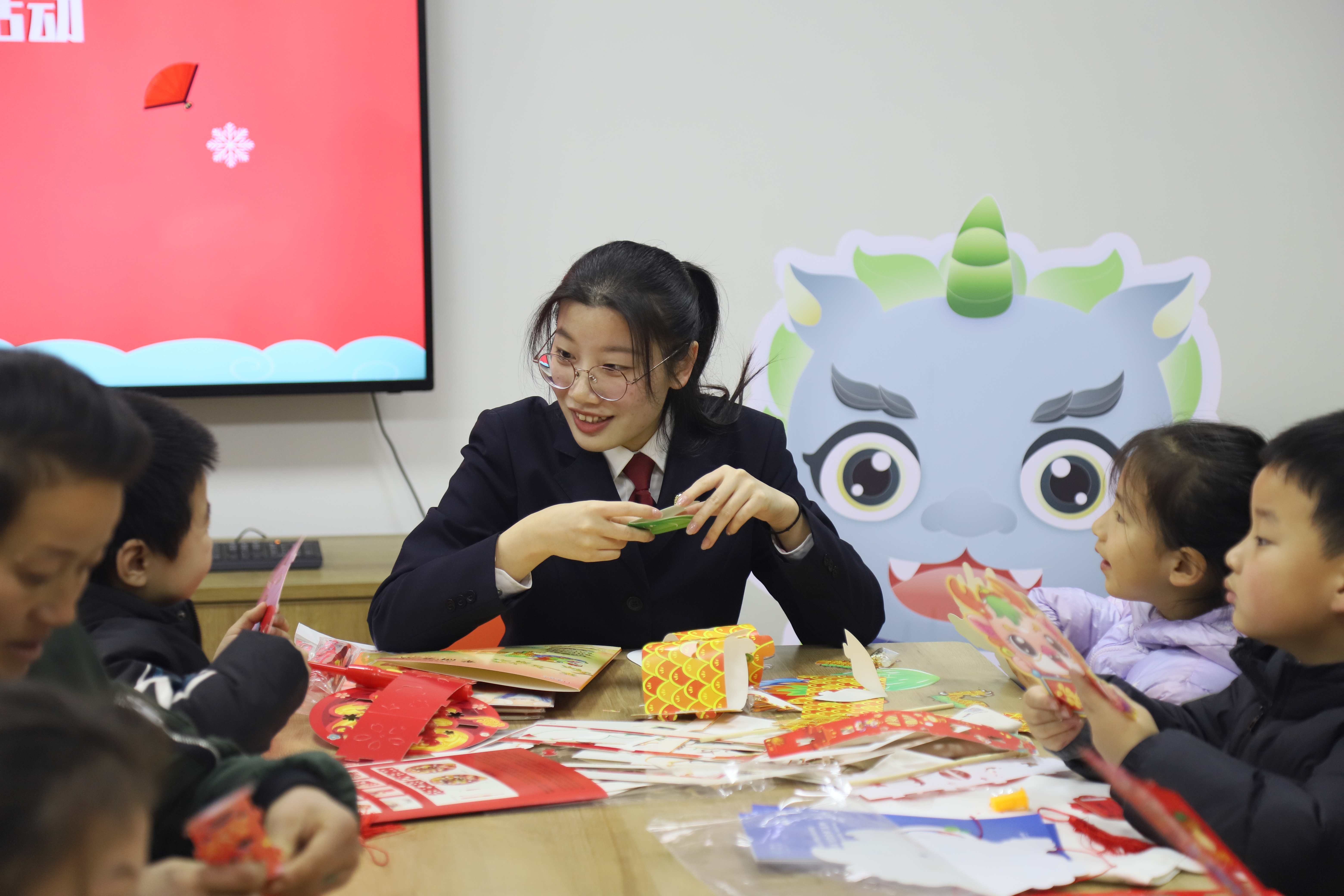 为提高家长在寒假春节期间的亲子陪伴质量,新区检察院干警邀请社区家长和儿童一起开展“巧手做灯笼,共庆幸福年”活动,大家一步步地搭建、组装,将材料包变成了一盏盏精致的龙灯,近距离感受中华优秀传统文化的深厚底蕴。小朋友们脸上洋溢着兴奋的光芒,爱不释手地展示着自己亲手做的花灯,沉浸在团圆喜庆的节日氛围之中。