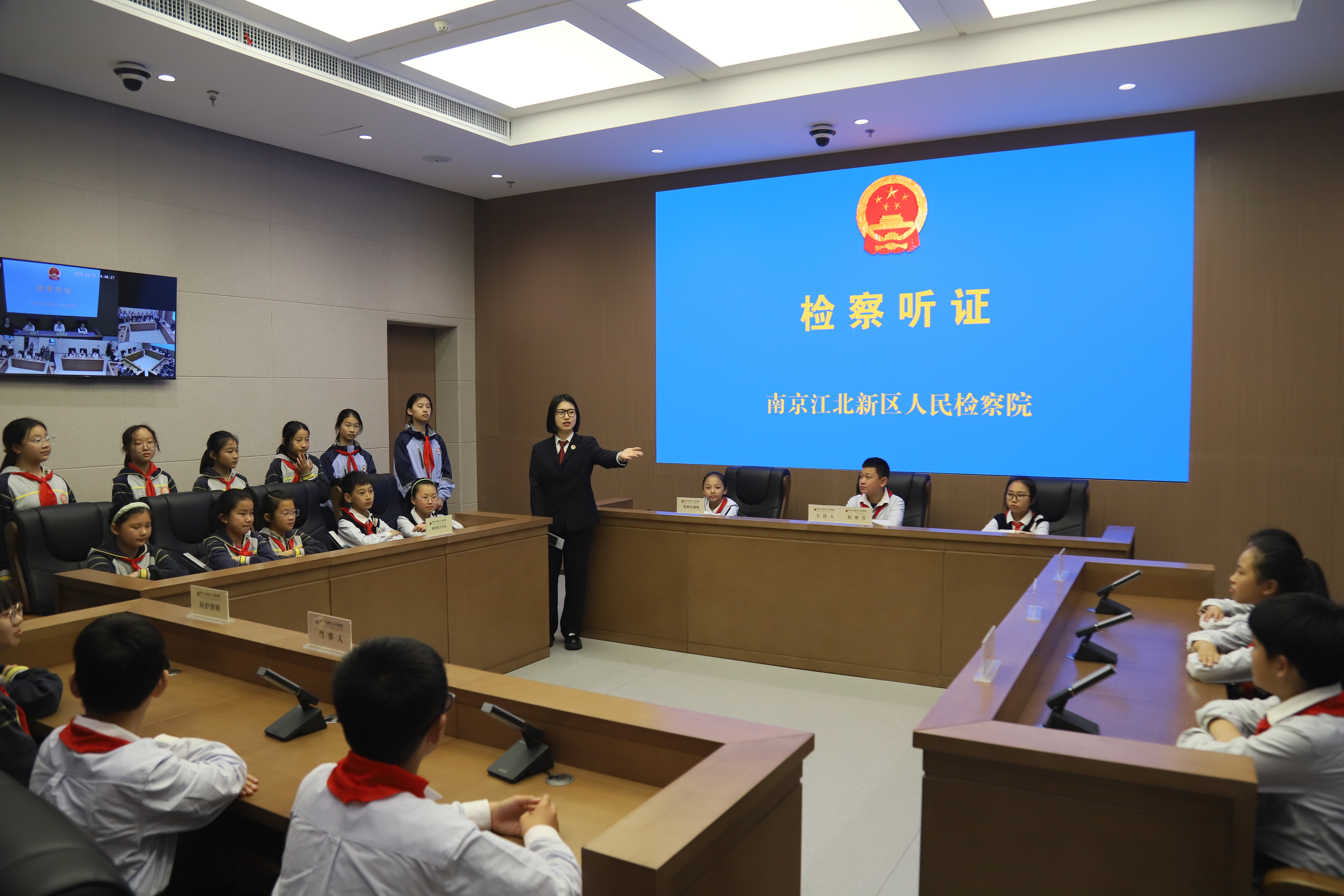 活动中,来自江北新区浦口实验小学万江分校、浦厂中学、扬子第二小学的35名师生,在检察干警的带领下,先后走进12309检察服务中心、公开听证室、办案区、未检心理疏导区、法治教育基地等工作阵地,沉浸式体验检察办案过程。