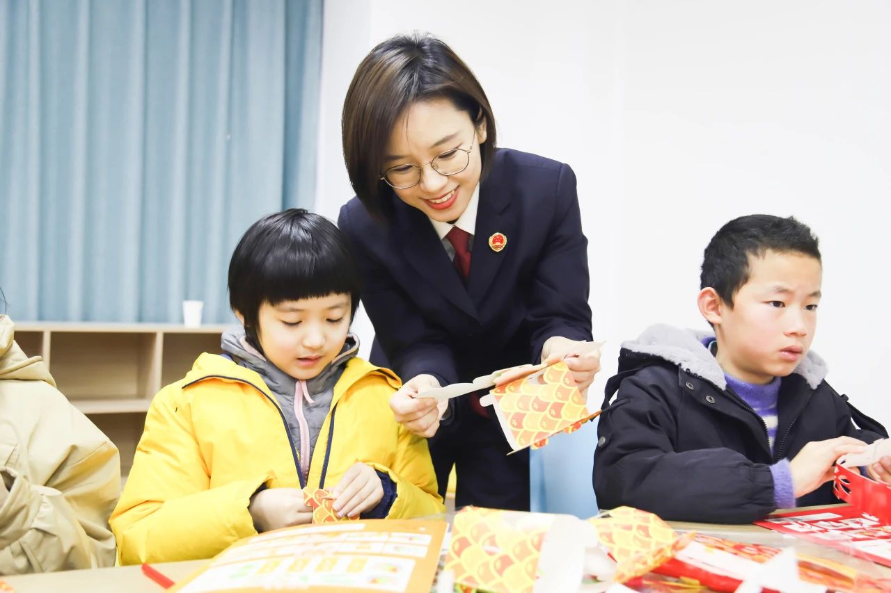 在社区儿童活动中心、社区幼儿园,袁丽丽带领孩子们开展“玩具观察员”游戏;法治公园长廊里,她带领同学们参与猜猜和法律相关的双面字谜游戏;检察听证室里,她引导学生们打开剧本“盲盒”,沉浸式扮演“检察官”“诉讼代理人”“听证员”……