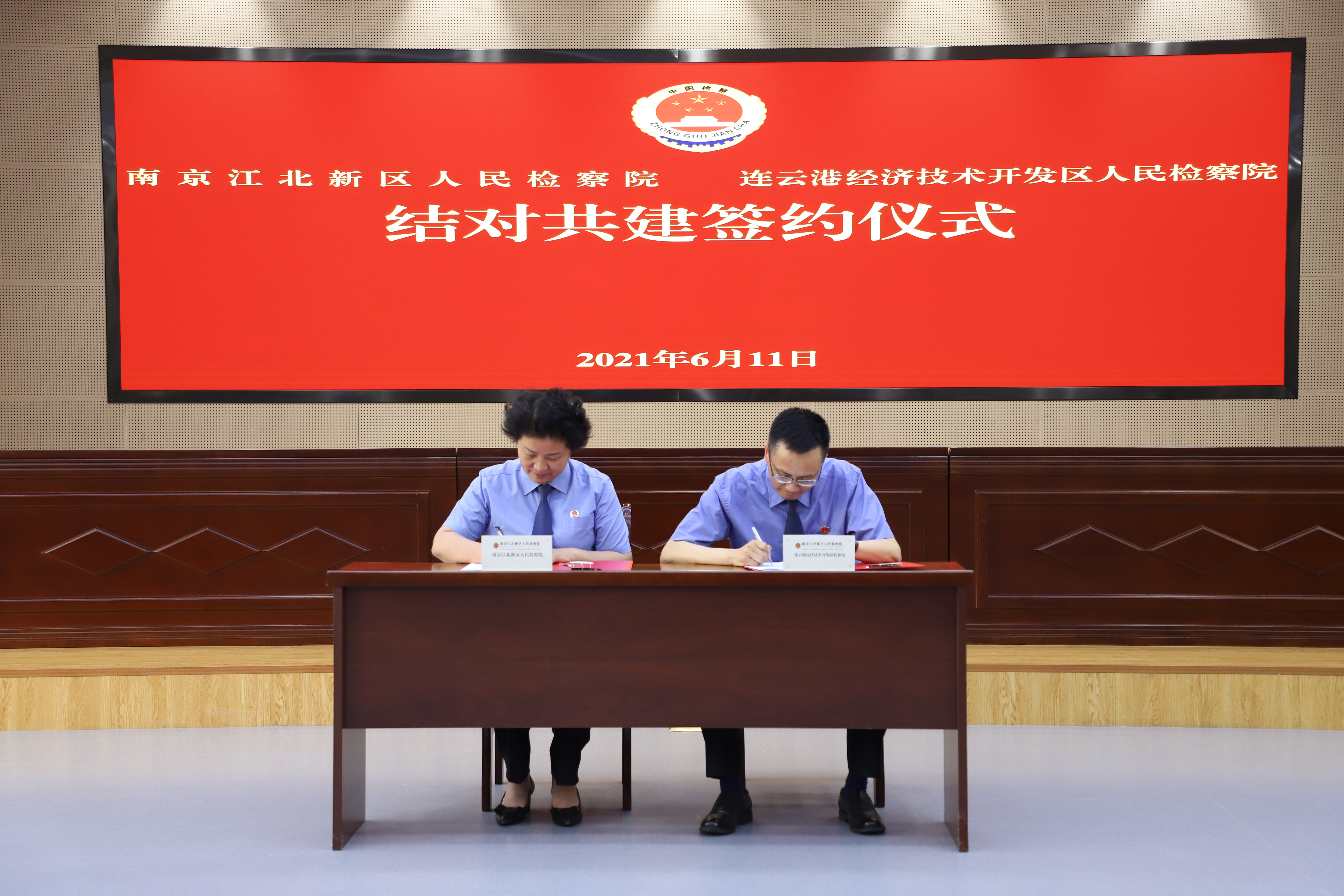 6月11日下午,南京江北新区人民检察院与连云港经济技术开发区人民检察院结对共建签约仪式在江北新区检察院举行。南京江北新区人民检察院分党组书记、检察长谢健,连云港经济技术开发区检察院党组书记、检察长董月明出席仪式,南京江北新区检察院、连云港开发区检察院班子成员及部门负责人参加活动。