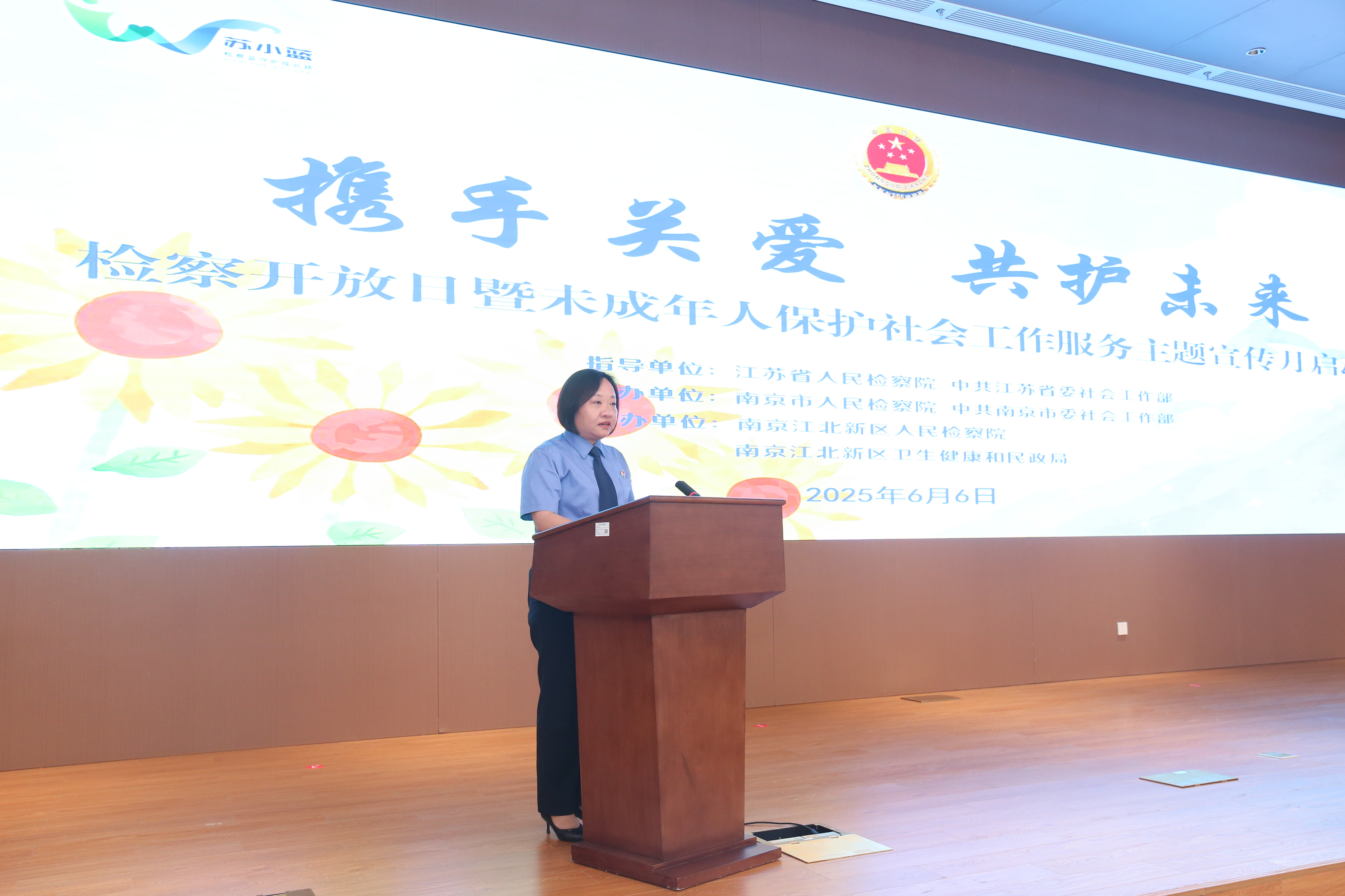六月初夏万物新,护苗成长正当时。6月6日,江苏省、南京市、南京江北新区三级检察院联合江苏省委、南京市委社会工作部,南京江北新区卫生健康和民政局联合举办“携手关爱 共护未来”检察开放日暨未成年人保护社会工作服务主题宣传月活动,邀请人大代表,政协委员,未成年人保护领域社会工作专业领军型人才代表,民政、教育、共青团、妇联等相关部门代表共计40余人参加。