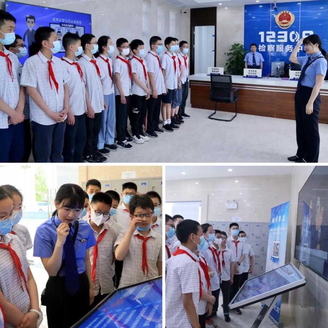 他们是来自南京江北新区浦口外国语学校的同学,参加这次的“求知之旅”——江北新区检察院开展的“检爱同行,共护未来”六一检察开放日活动。孩子们参观了12309检察服务大厅、案管中心、未成年人办案区、未成年人保护中心,并通过观看检察工作短片,近距离接触检察官、了解检察工作。