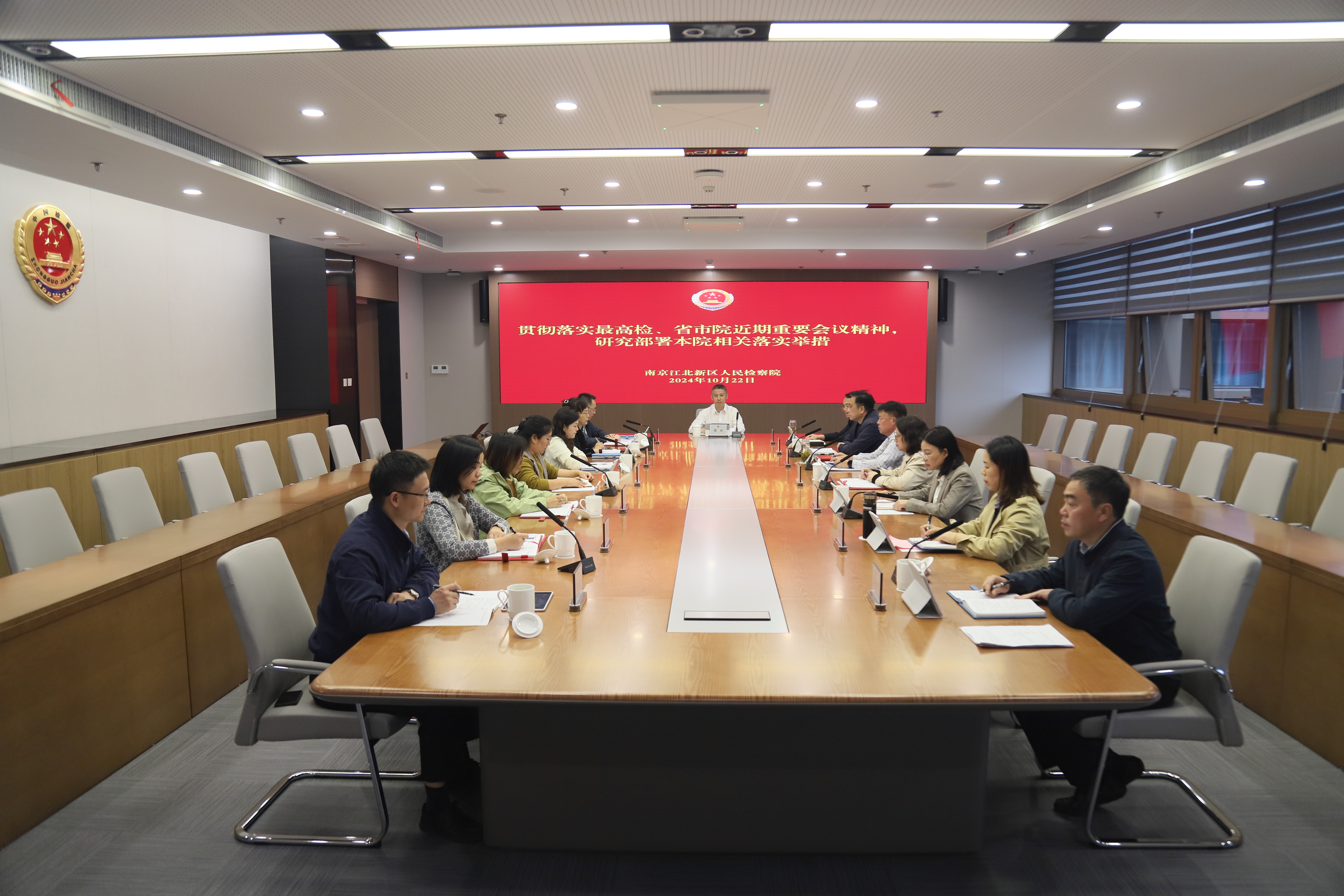 10月22日,南京江北新区人民检察院召开党组(扩大)会,专题学习贯彻最高检检委会(扩大)会议、党组会和省检察院1至9月业务质效分析研判会商会议、市检察院第三季度高质效办案推进会精神。江北新区检察院分党组书记、检察长梁云主持会议并讲话。