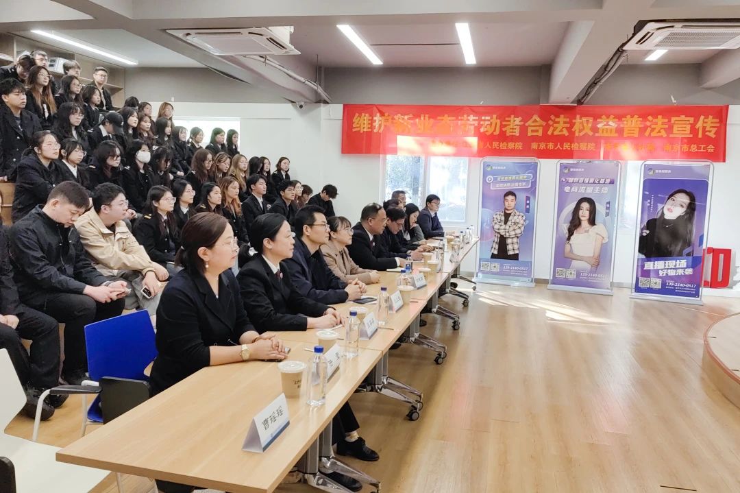 为扎实开展“检护民生”专项行动,保护网络主播新业态群体的合法权益,促进网络直播行业的健康发展,10月25日下午,江苏省人民检察院、南京市人民检察院、南京江北新区人民检察院、南京市江宁区人民检察院联合南京市人力资源和社会保障局、南京市总工会在江苏海事职业技术学院,共同为即将入职的81位网络主播开展了一场别开生面的法治宣讲活动。