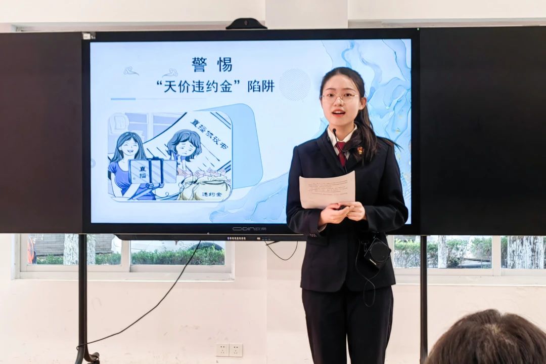 “陷阱往往隐藏在看似诱人的合同条款中,不良公司可能会承诺提供高额收益、大力推广等福利,一旦主播们违反了某些模糊不清的条款,便可能面临巨额的违约金索赔。”南京江北新区人民检察院干警李佳寰以《警惕网络主播“天价”违约金陷阱》为题,向主播们开展了针对性法治授课。
