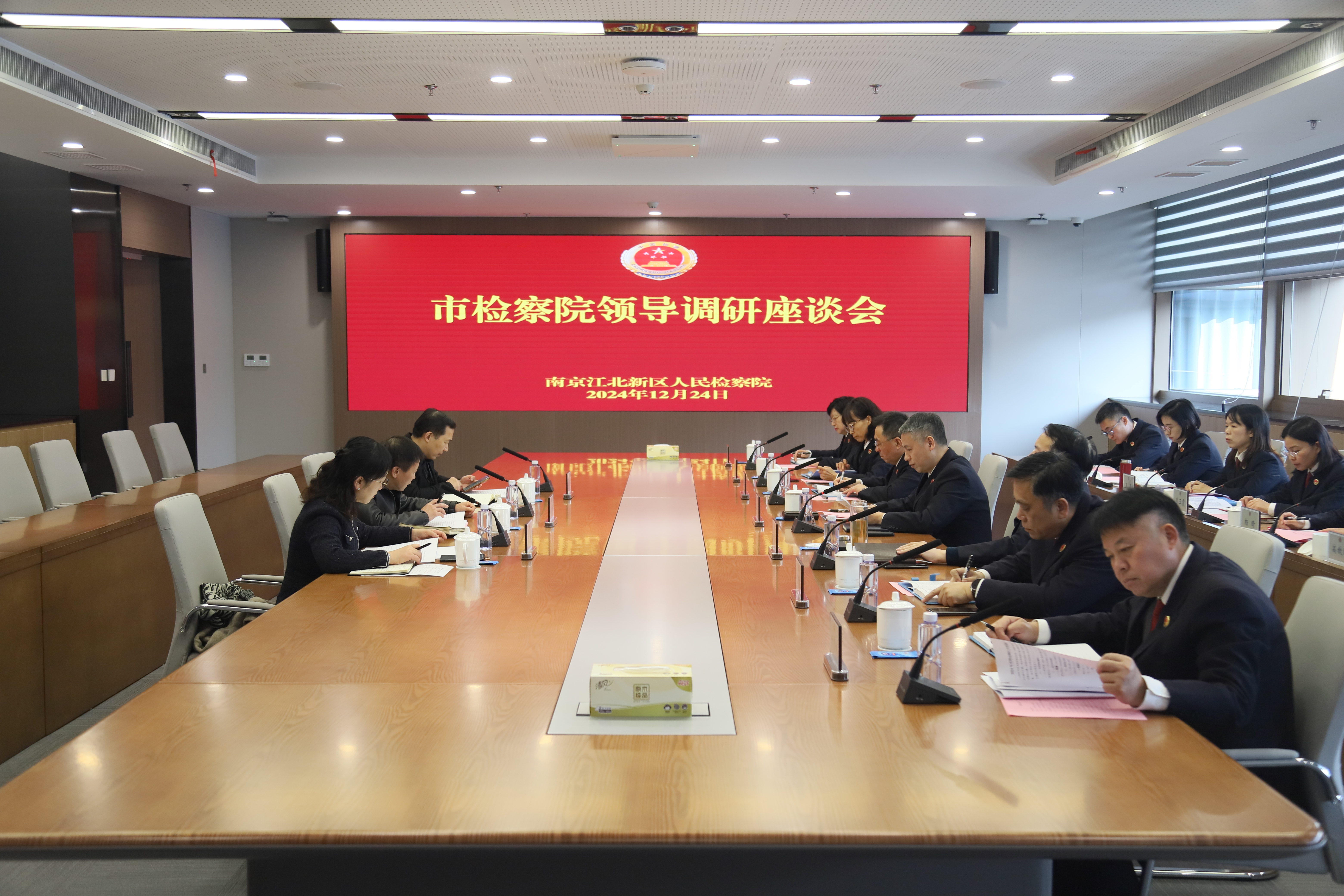 12月24日,南京市人民检察院检察委员会专职委员肖水金一行莅临江北新区检察院调研了解、指导协助策划“一院一品”建设工作,市院法律政策研究室主任李勇、法律政策研究室二级高级检察官助理王峻陪同调研,江北新区检察院领导班子成员和各部门主要负责同志参加调研。