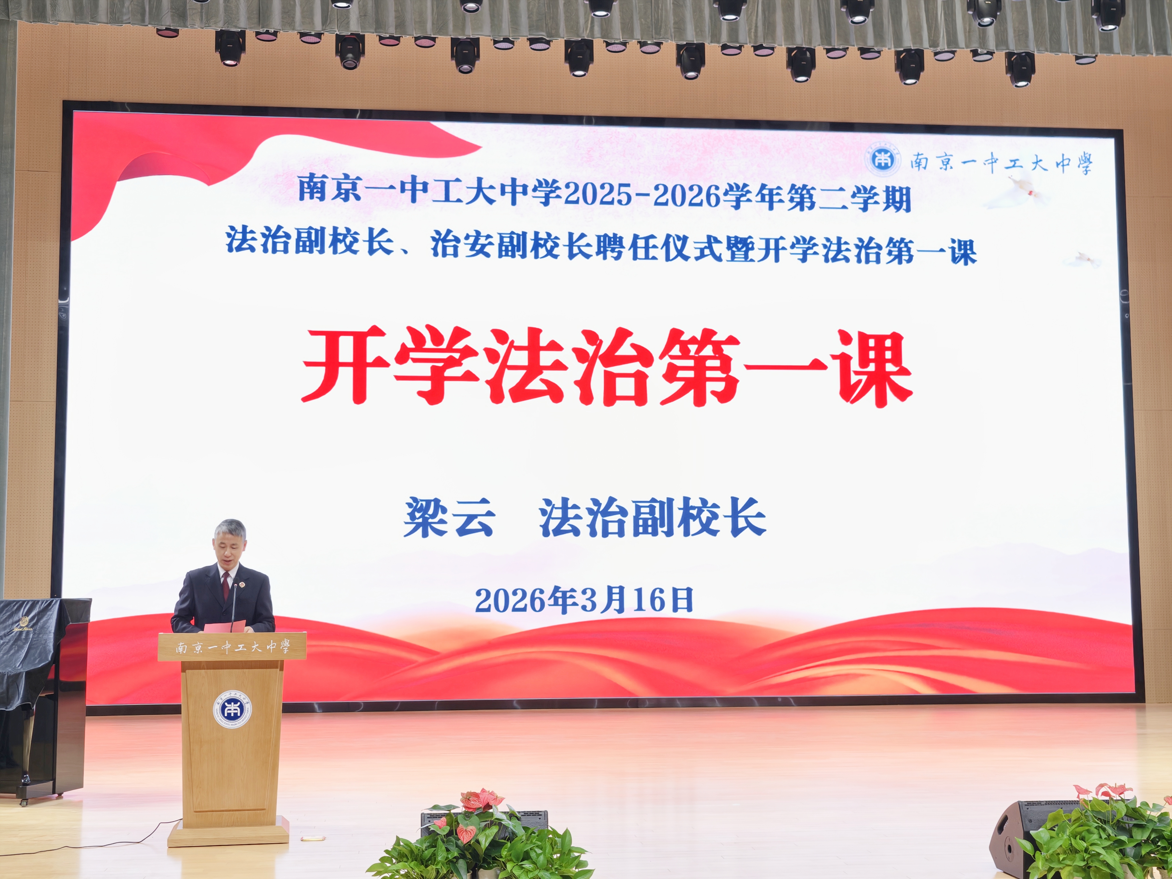 南京一中工大中学升旗仪式上,江北新区检察院分党组书记、检察长梁云,以一堂生动的“国旗下讲话”开启了新学期的法治第一课。从“坚定理想信念”到“恪守道德法律”,从“拒绝校园欺凌”到“做法治传播者”,深入浅出的讲解赢得阵阵掌声。